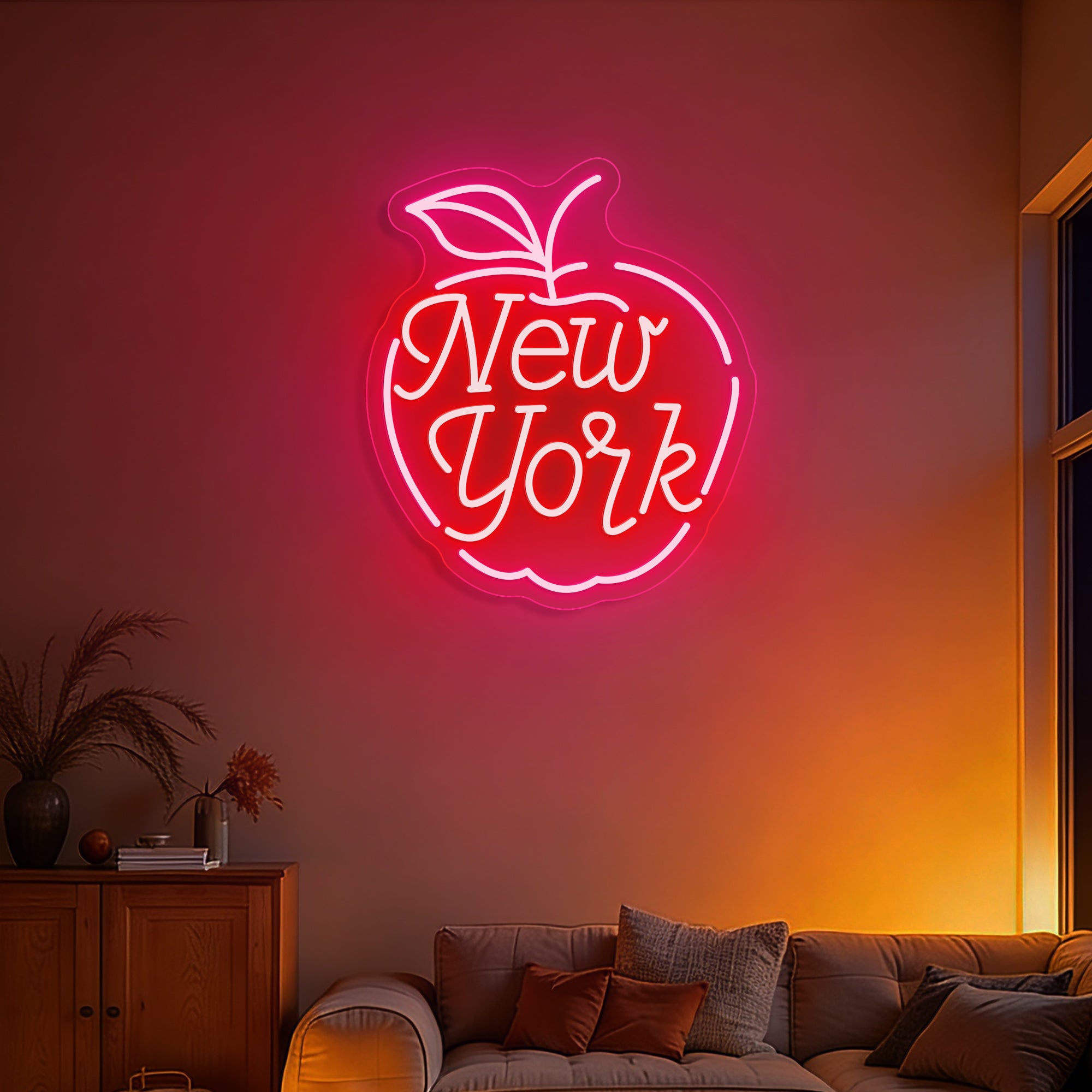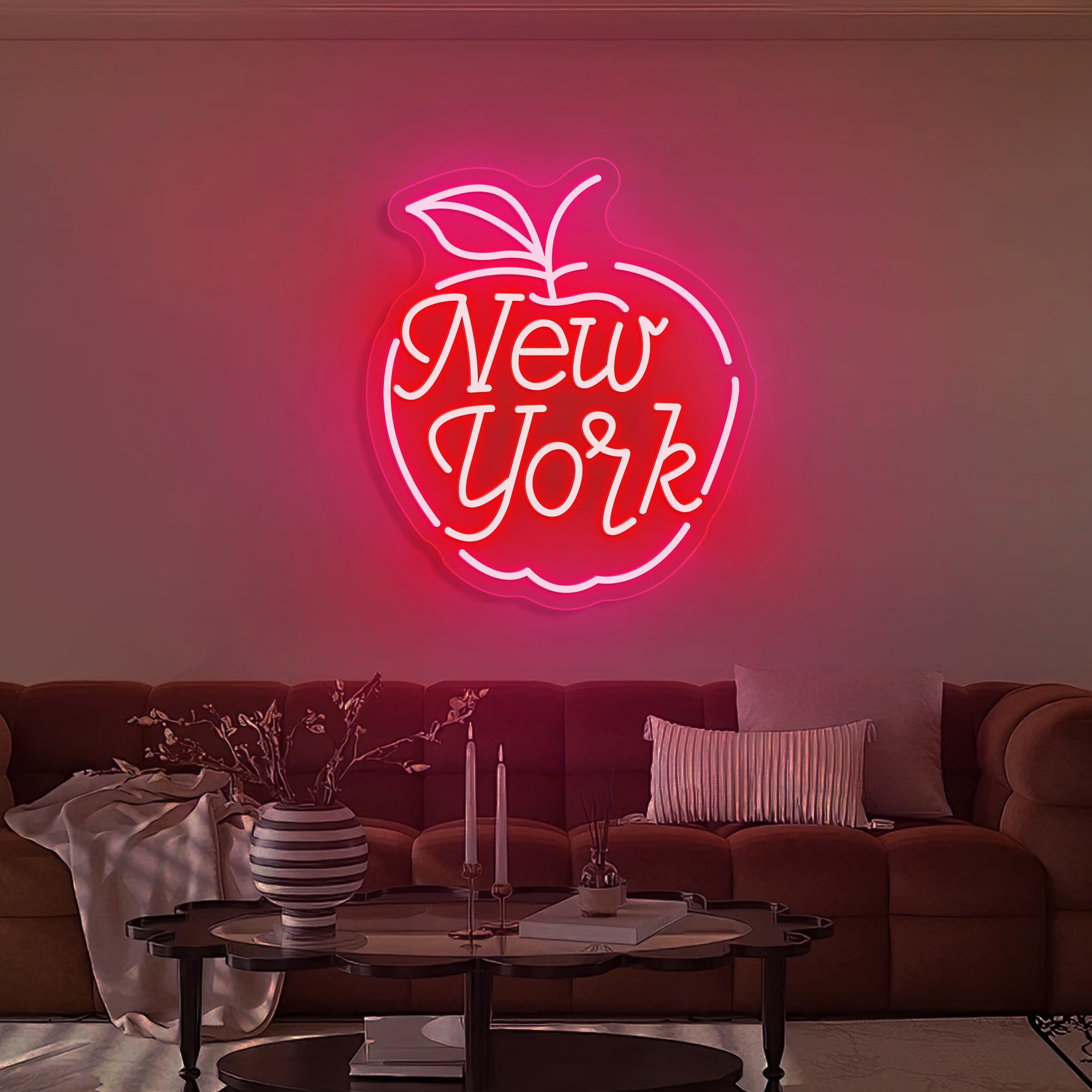 Urban & Inviting Glow: Emits a vibrant, energetic light that captures the city's 24/7 spirit. The warm glow through the apple outline and the bold text creates an atmosphere that is both nostalgic for the city's history and excitingly contemporary.