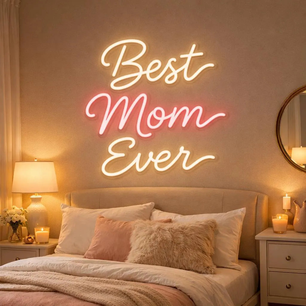 Heartfelt & Celebratory Typography Design: This luminous sign delivers the ultimate declaration of love and appreciation in its purest form. It features the cherished phrase “Best Mom Ever” in a warm, elegant font—perhaps a graceful script that feels personal and heartfelt, or a bold, friendly typeface that lets the words shine with confidence. The design is intentionally simple, powerful, and deeply personal, allowing those three simple words to stand alone as a radiant tribute to the most important woman in your life. Expertly crafted in smooth, continuous LED neon, it transforms a daily sentiment into a permanent, glowing celebration of everything she is and everything she does.