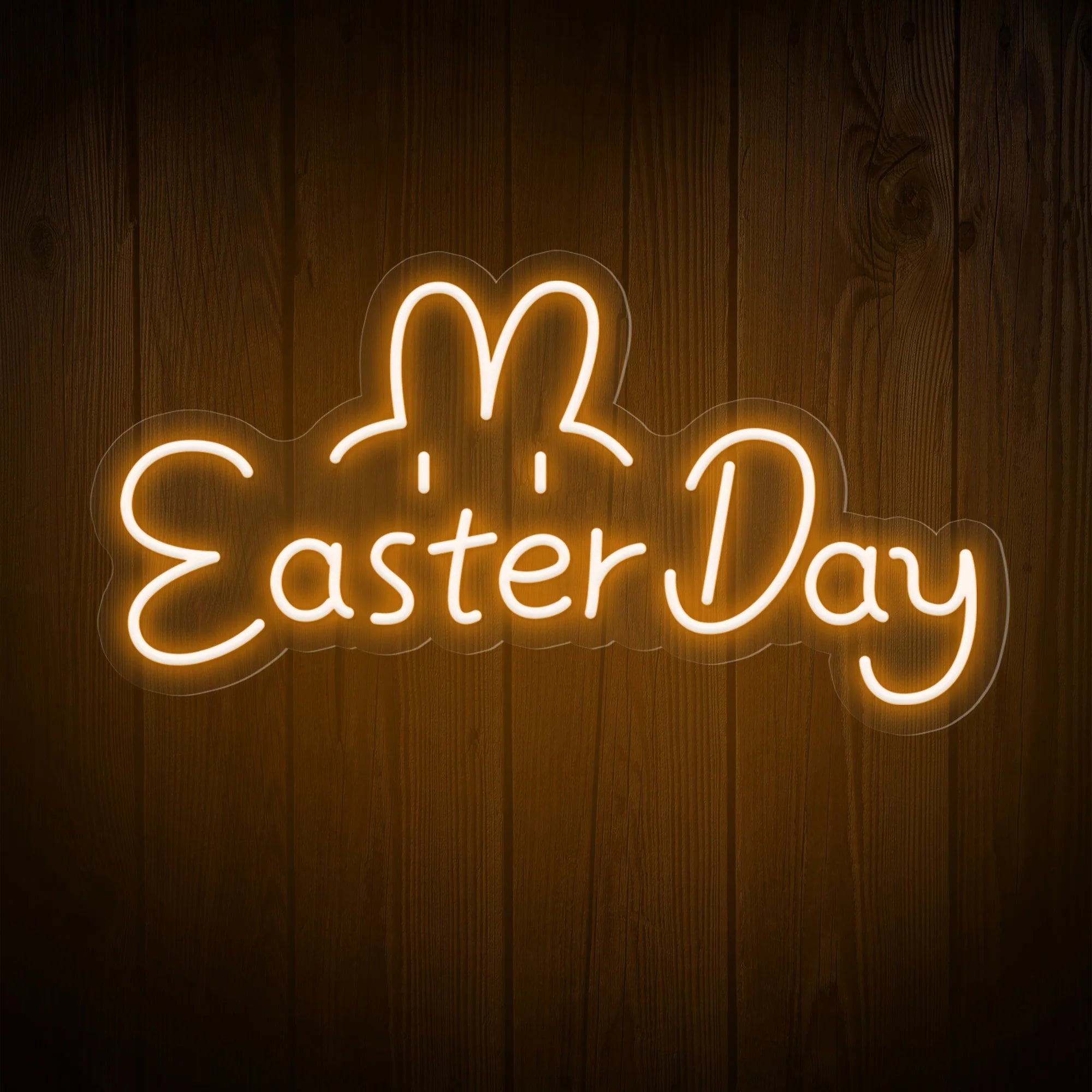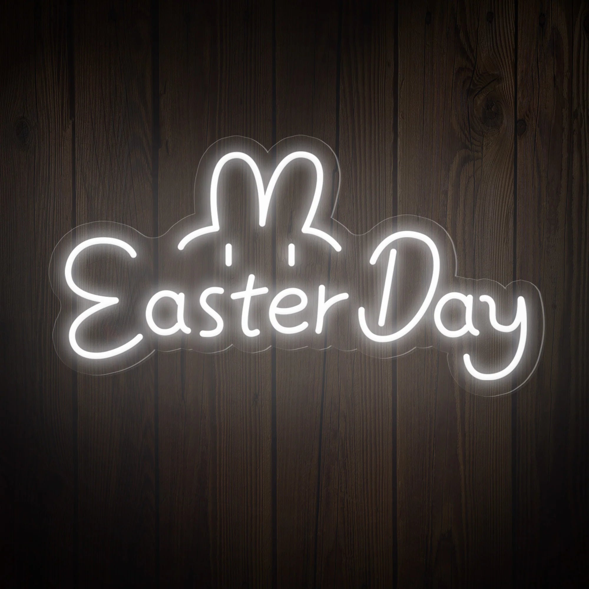 Whimsical & Expressive Typography and Graphic Design: This adorable sign brings the playful spirit of Easter to life with irresistible charm. It features the festive greeting “Easter Day” in a warm, friendly font—perhaps a rounded, approachable typeface that feels as cheerful as the holiday itself. But the real magic lies in what’s watching over those words: a pair of long, floppy bunny ears and two big, sparkling bunny eyes peeking out from above, as if the Easter Bunny himself is hiding just behind your wall, ready to spread joy. This intentional fusion of text and character transforms a simple holiday message into a living, glowing personality that delights children and adults alike. Expertly crafted on premium acrylic with smooth, radiant LED neon outlining both the lettering and the adorable bunny features, it turns Easter’s most beloved symbol into a permanent, heartwarming celebration of springtime joy.