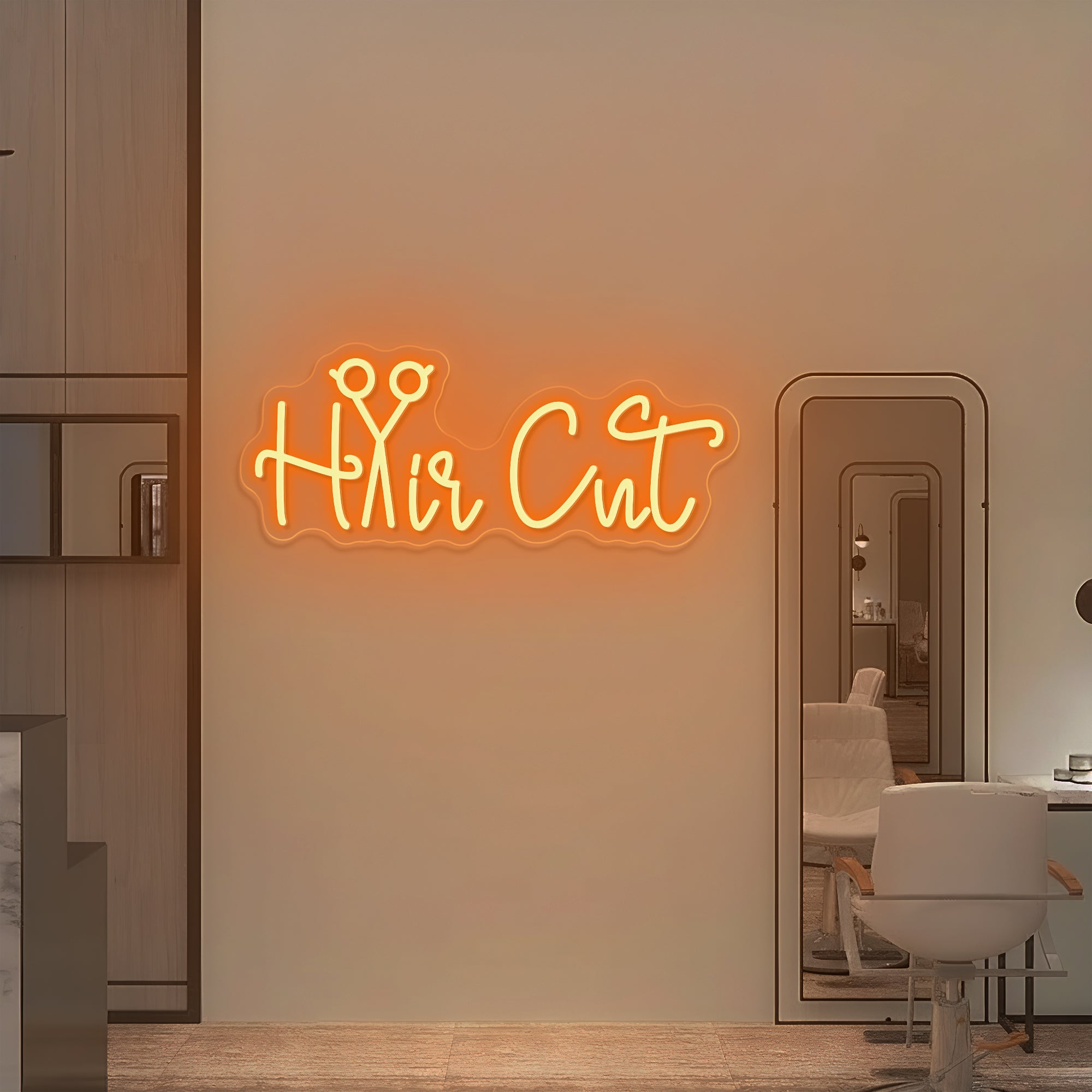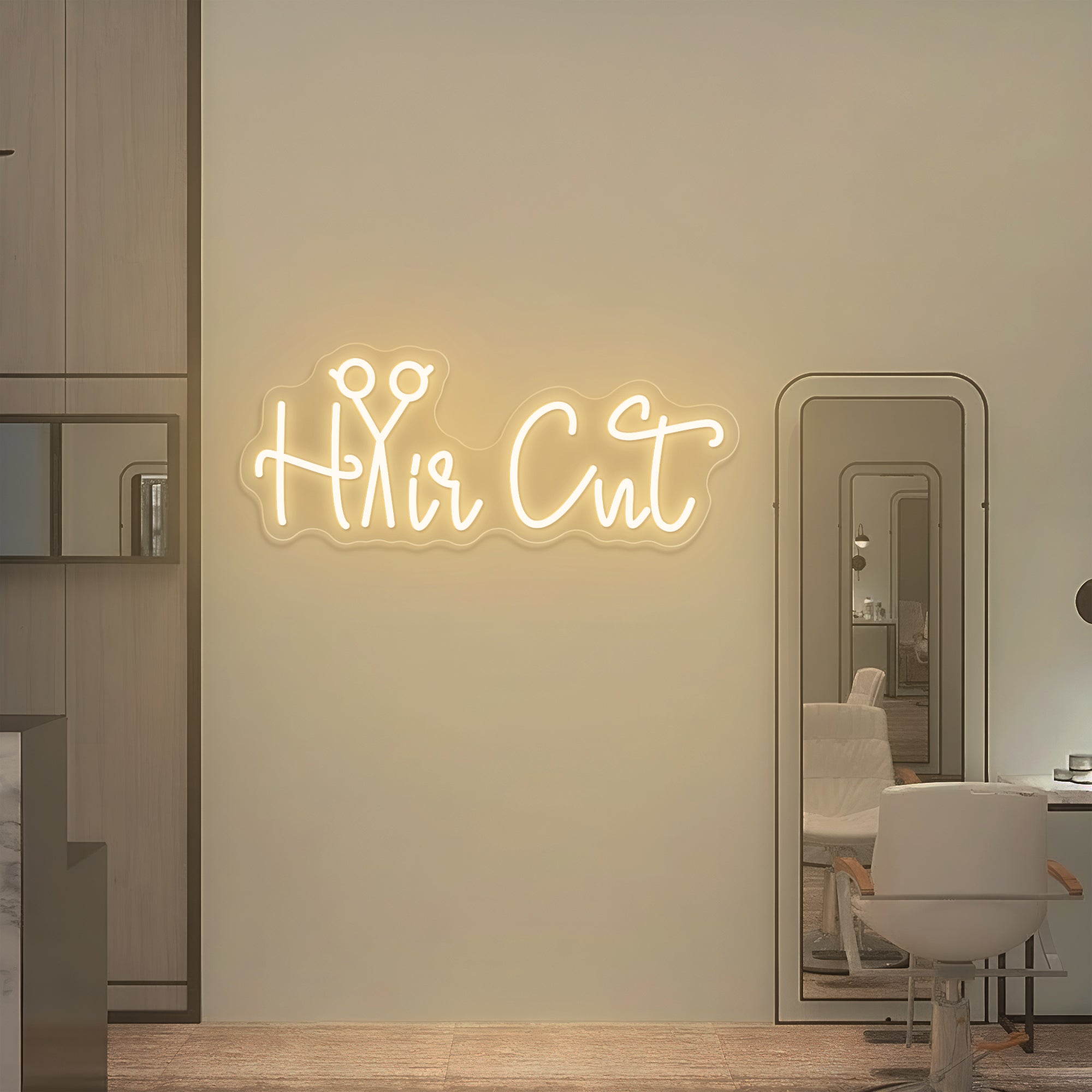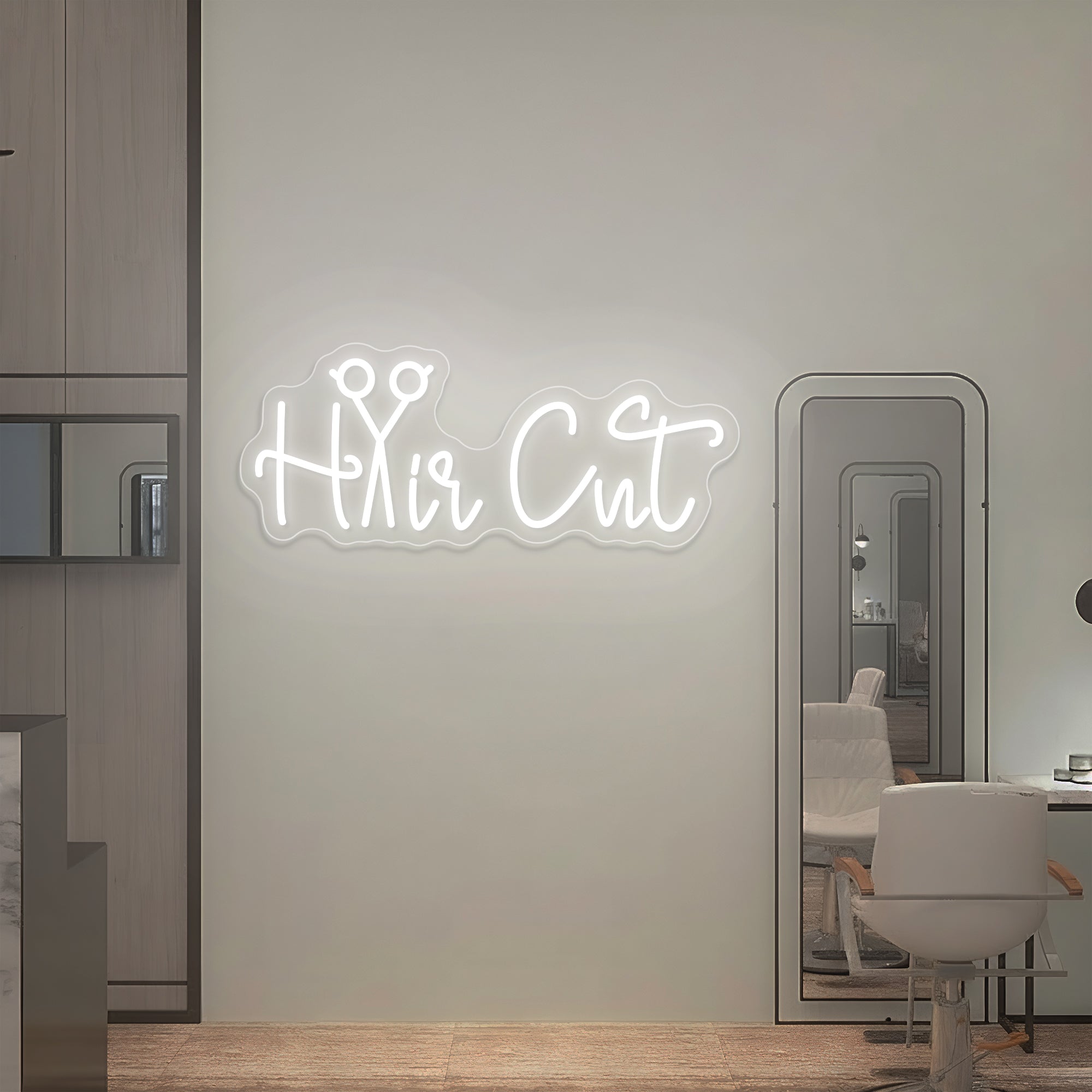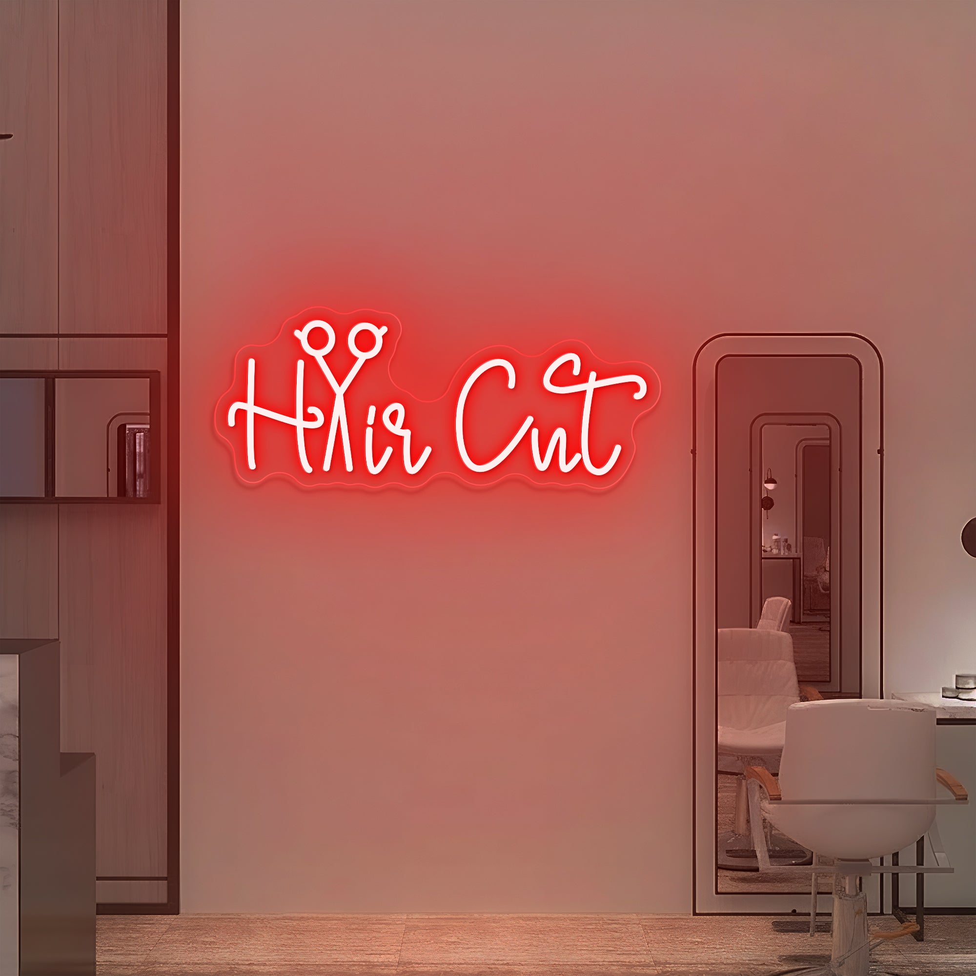 Clever & Professional Typography Design: This sign makes an instantly understandable statement for any beauty business. It features the essential phrase “Hair Cut” in a bold, clean, and modern font, brought to life through high-fidelity UV printing. In a brilliant design twist, the letter “a” in “Cut” is artfully replaced by a sleek, stylized pair of open scissors—the universal symbol of the hairstylist‘s craft. This intentional fusion of word and tool transforms a simple service description into a luminous emblem of precision, skill, and professional artistry. Expertly crafted on premium acrylic with smooth, radiant LED neon outlining the entire design, it turns a business identifier into a glowing signature of salon expertise.