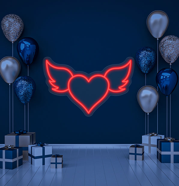 Whimsical & Symbolic Design: This enchanting sign captures the magical feeling of love taking flight. It features a beautifully shaped heart, gracefully flanked by a pair of delicate, stylized wings. The design is intentionally dreamy and symbolic, transforming the classic heart into a luminous emblem of soaring affection and angelic devotion. Expertly crafted in smooth, flexible LED neon, it turns a poetic concept into a radiant and permanent piece of art.