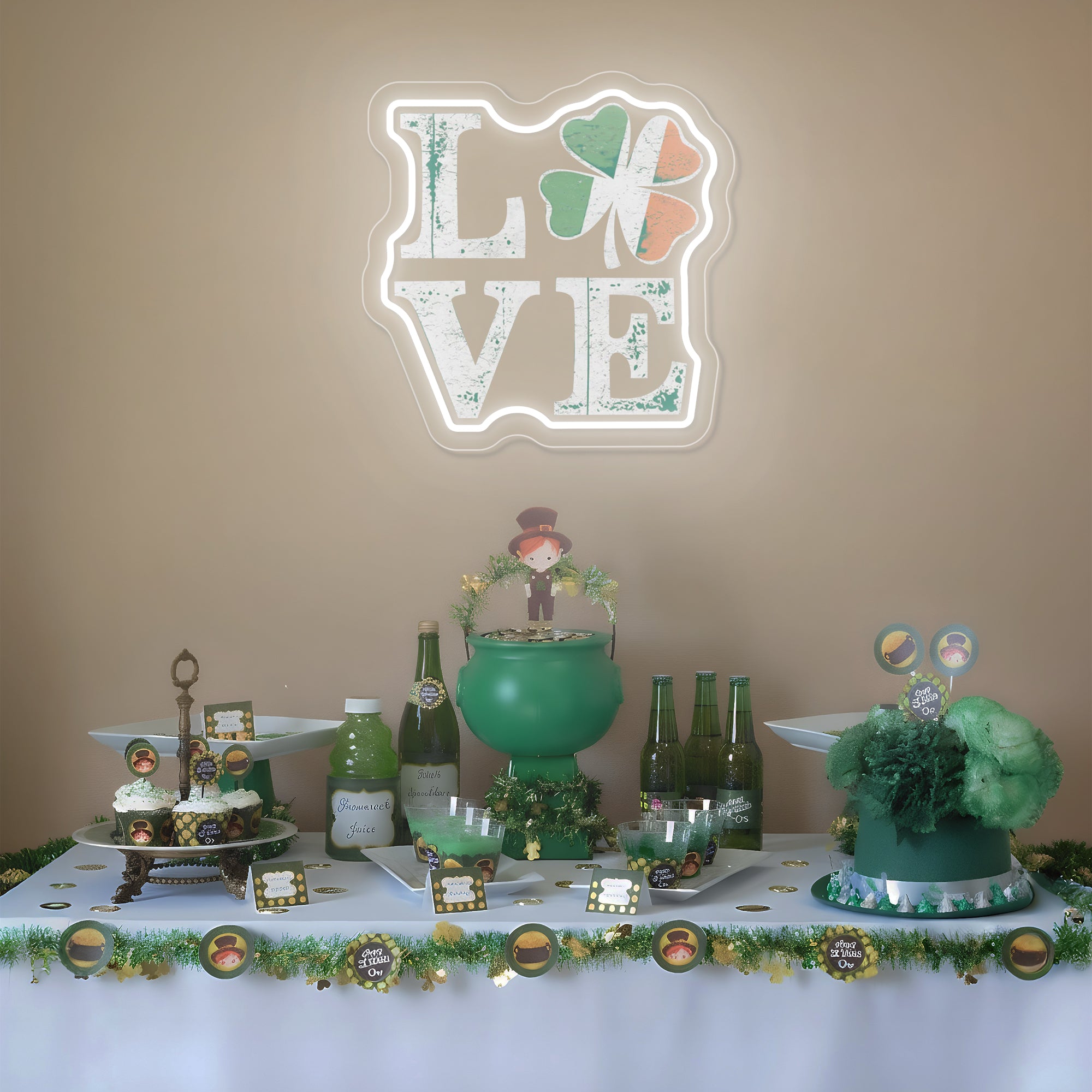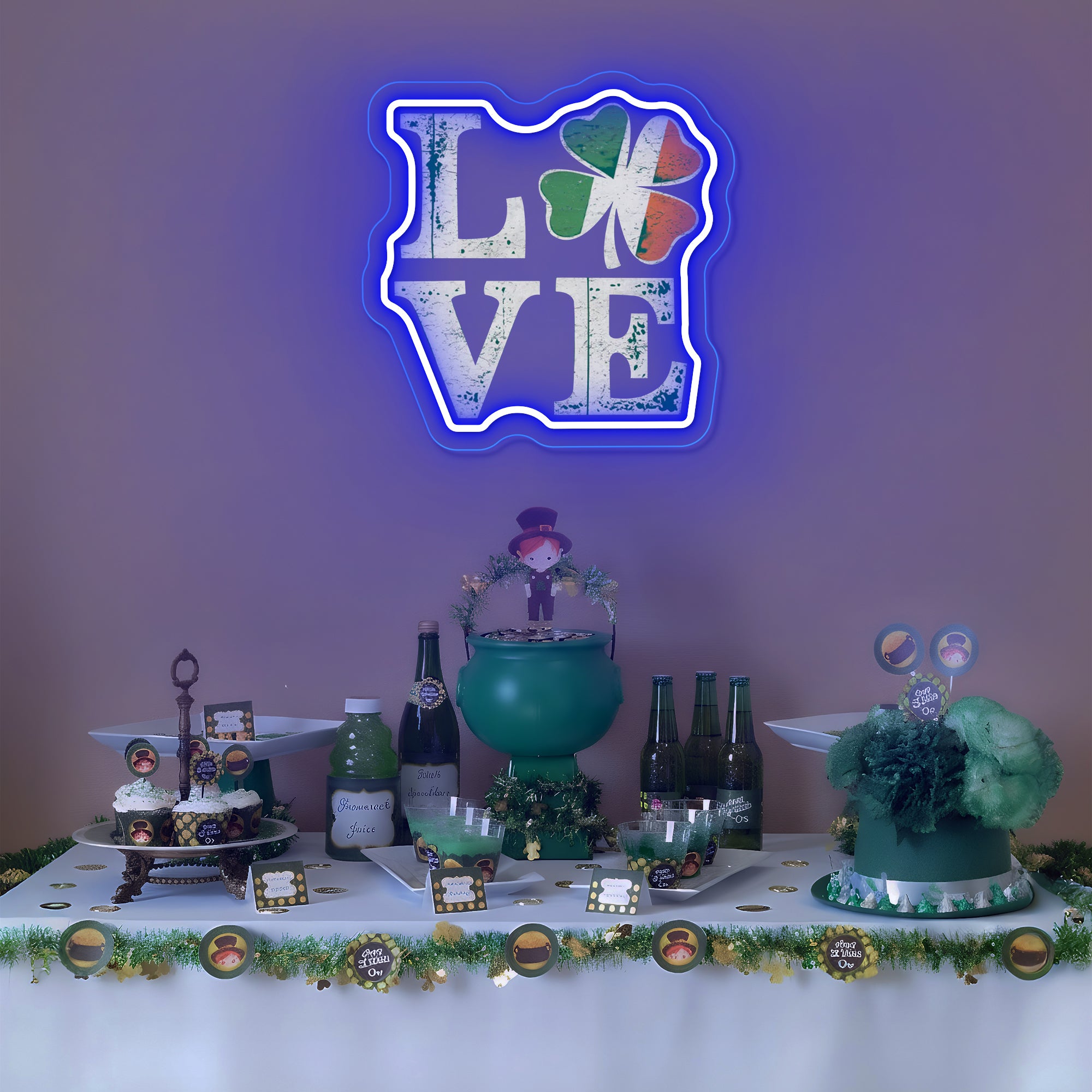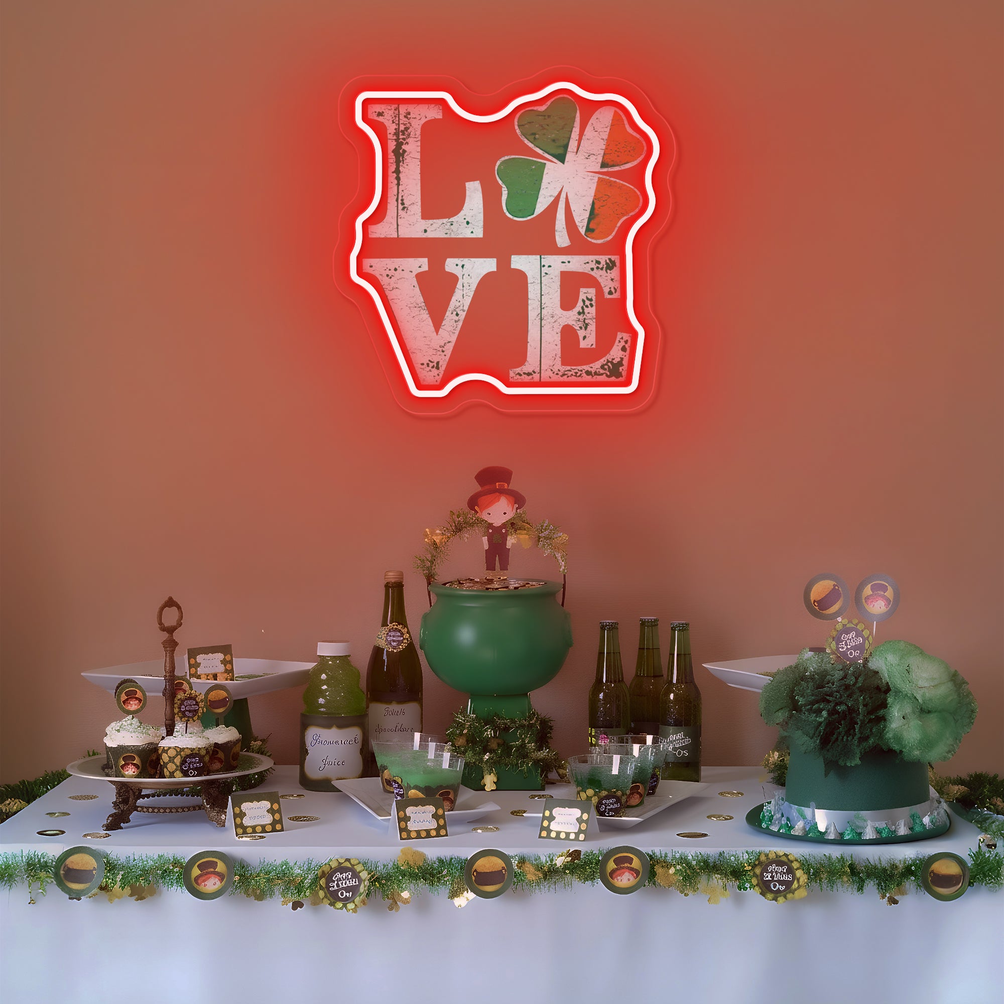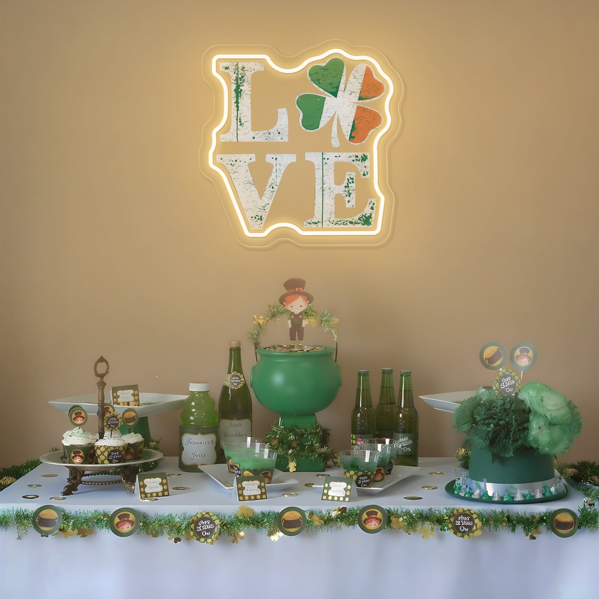 Creates a Lucky & Loving Holiday Atmosphere: More than decor, this piece is a wish for fortune wrapped in a declaration of love. It instantly transforms a home bar, living room, entryway, or party space into the heart of your St. Patrick's Day celebrations. It fosters an environment of joy, affection, and hopeful anticipation, serving as a glowing, photogenic emblem that invites both love and luck to find their way to your door. It doesn't just decorate; it blesses your space with the promise of fortune wrapped in the warmth of love.