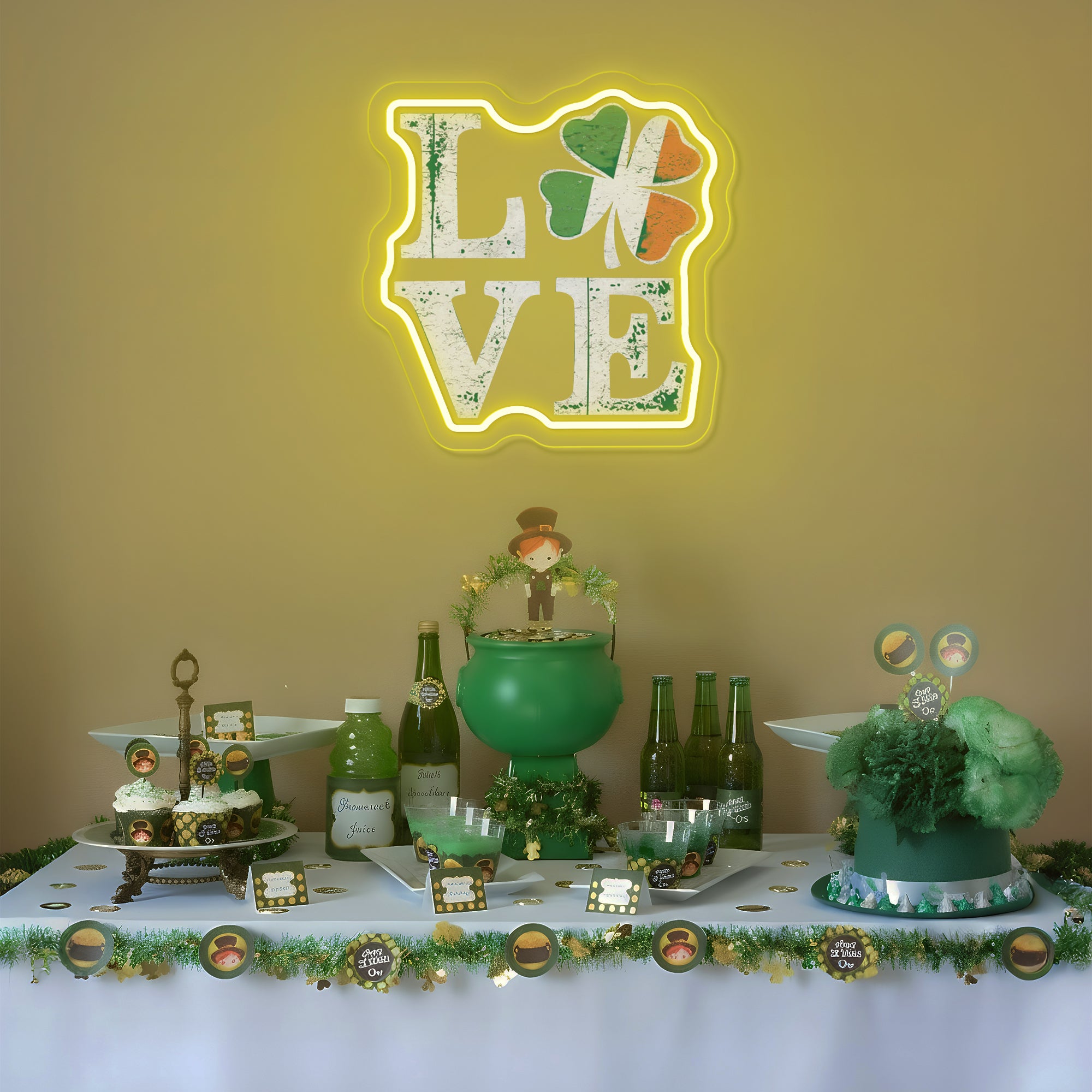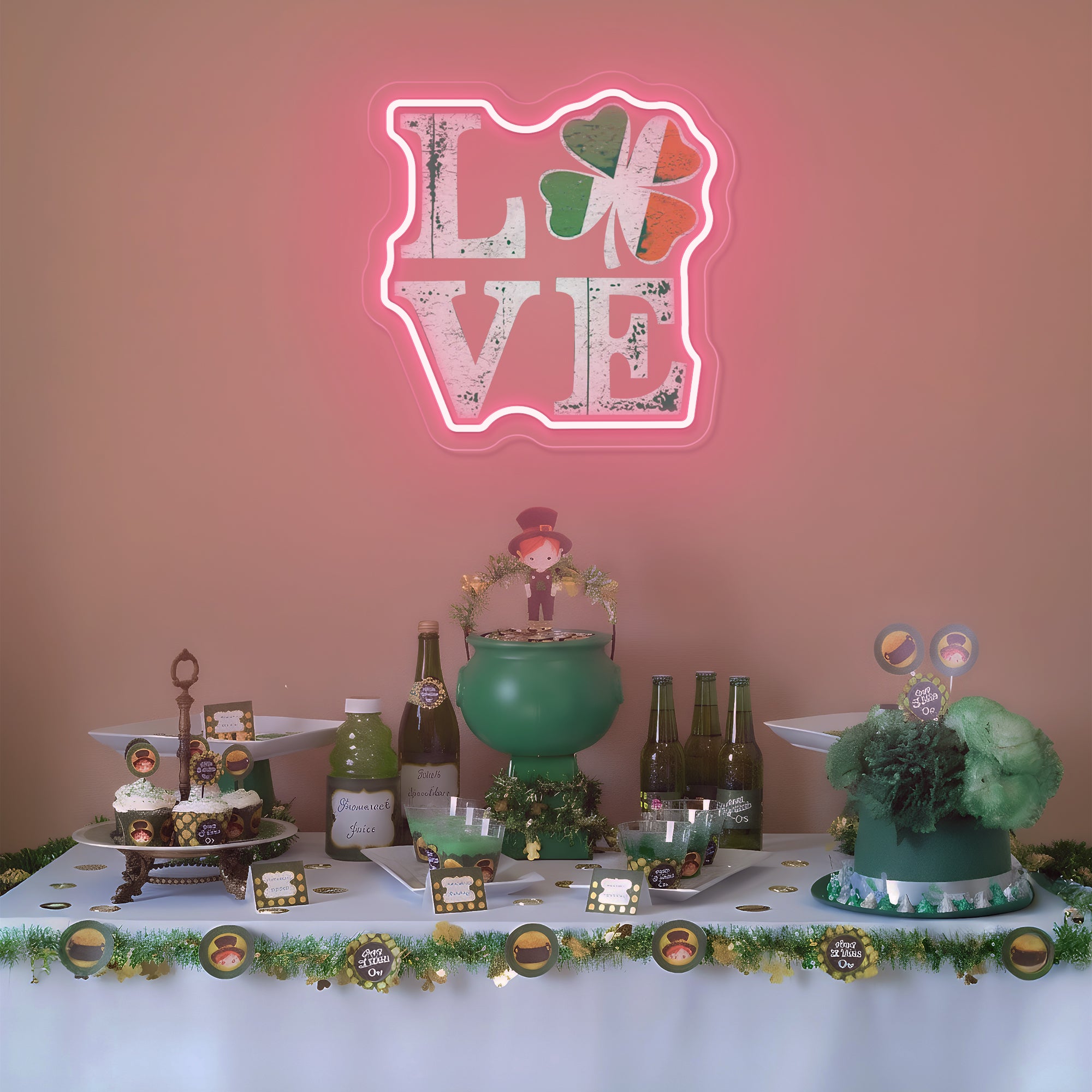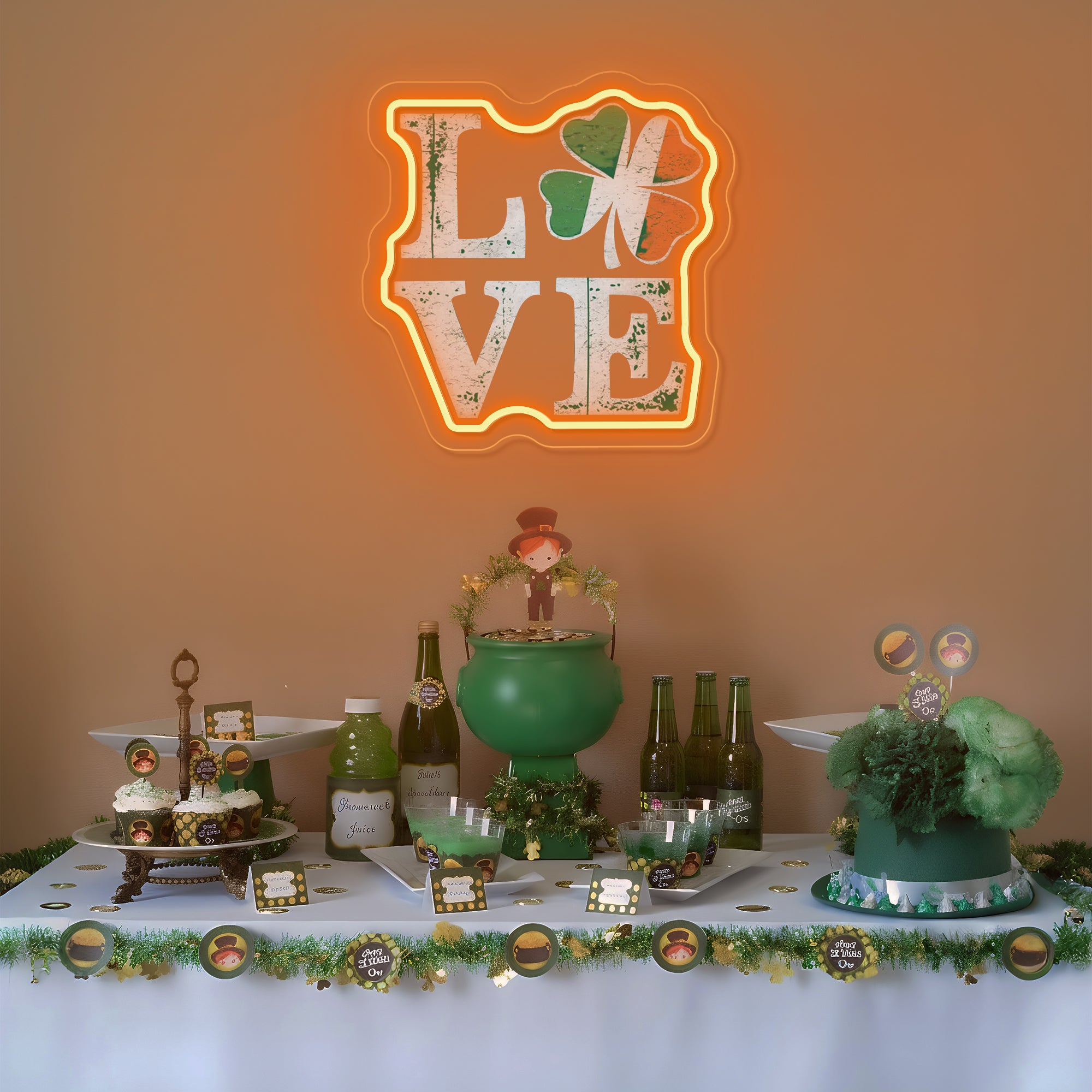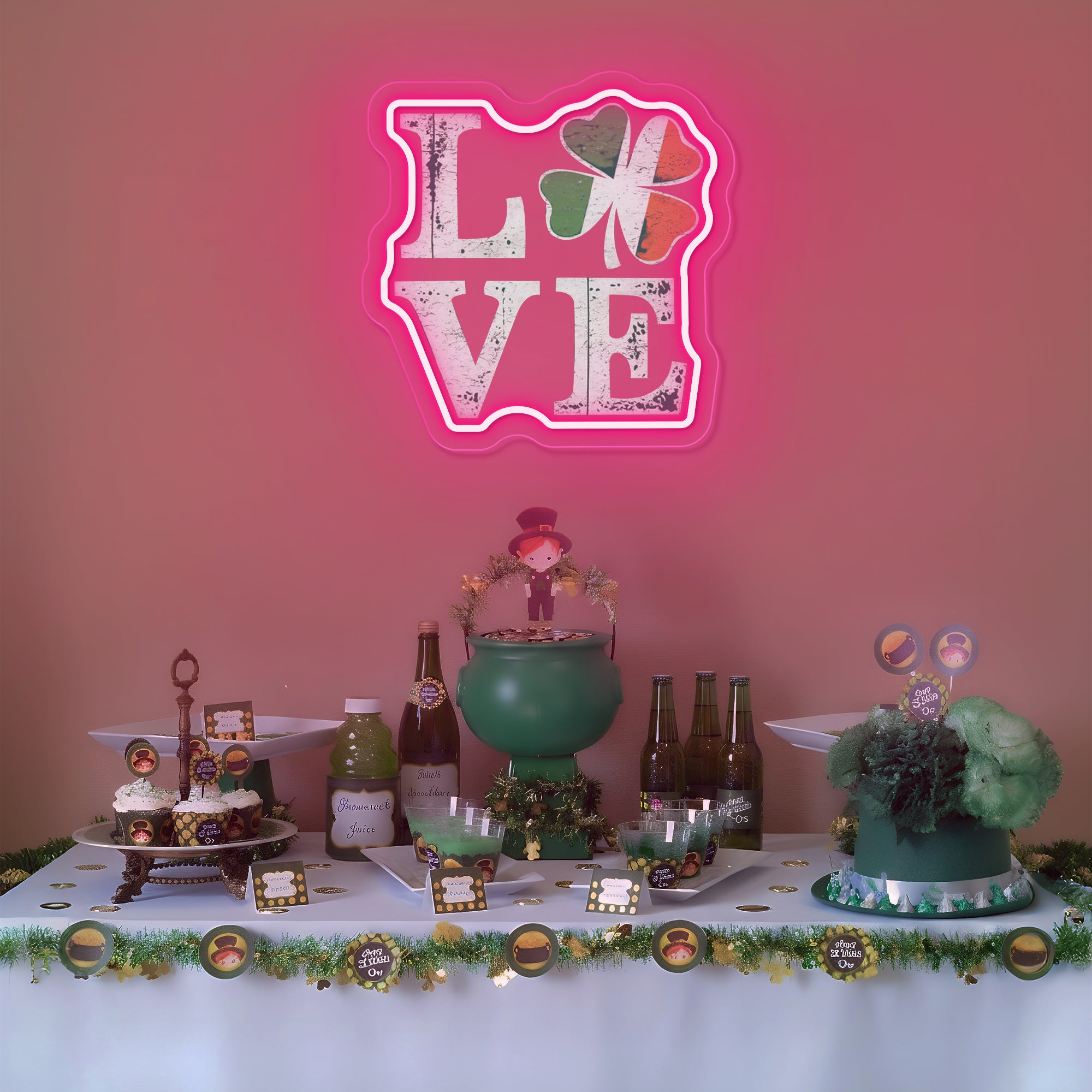 Creates a Lucky & Loving Holiday Atmosphere: More than decor, this piece is a wish for fortune wrapped in a declaration of love. It instantly transforms a home bar, living room, entryway, or party space into the heart of your St. Patrick's Day celebrations. It fosters an environment of joy, affection, and hopeful anticipation, serving as a glowing, photogenic emblem that invites both love and luck to find their way to your door. It doesn't just decorate; it blesses your space with the promise of fortune wrapped in the warmth of love.