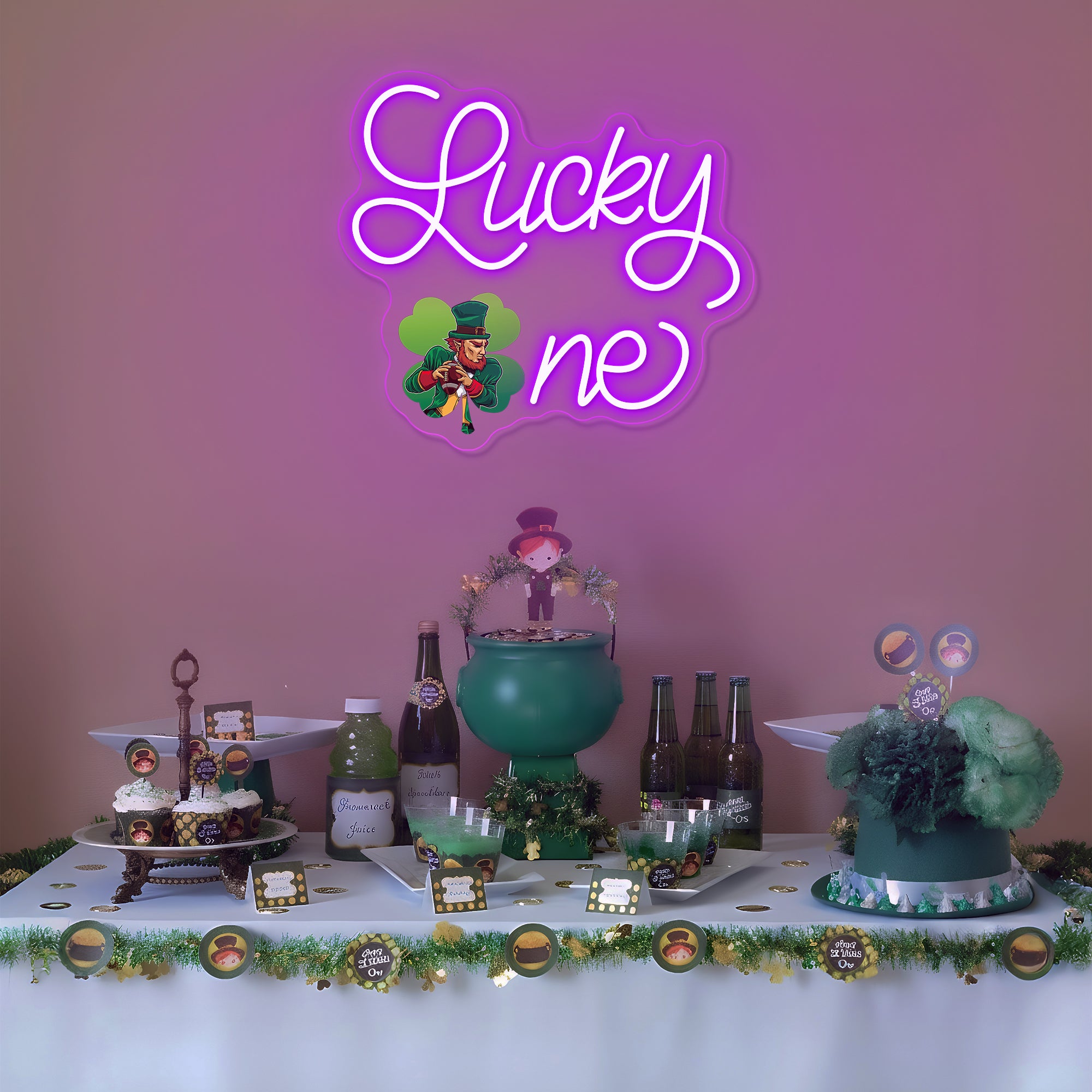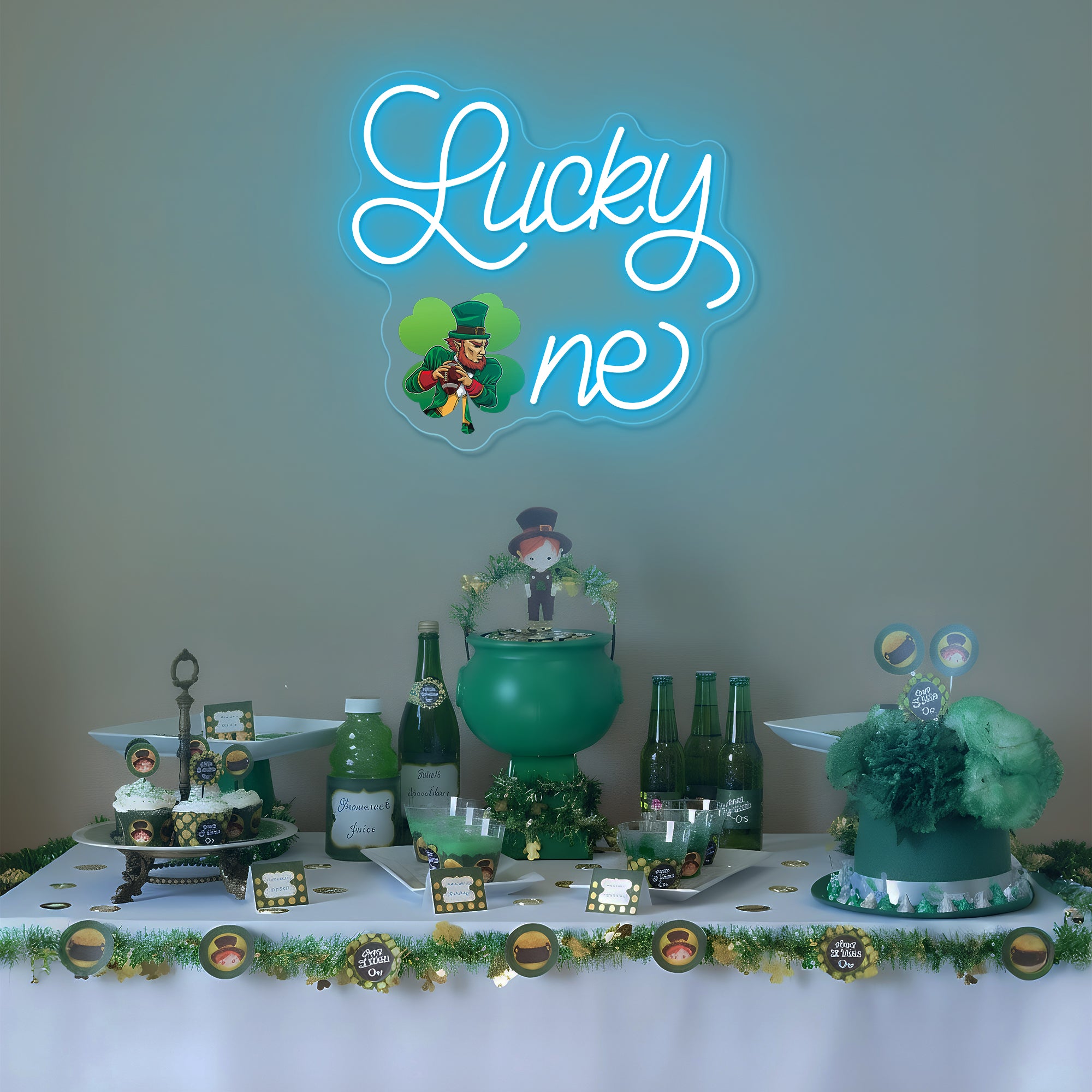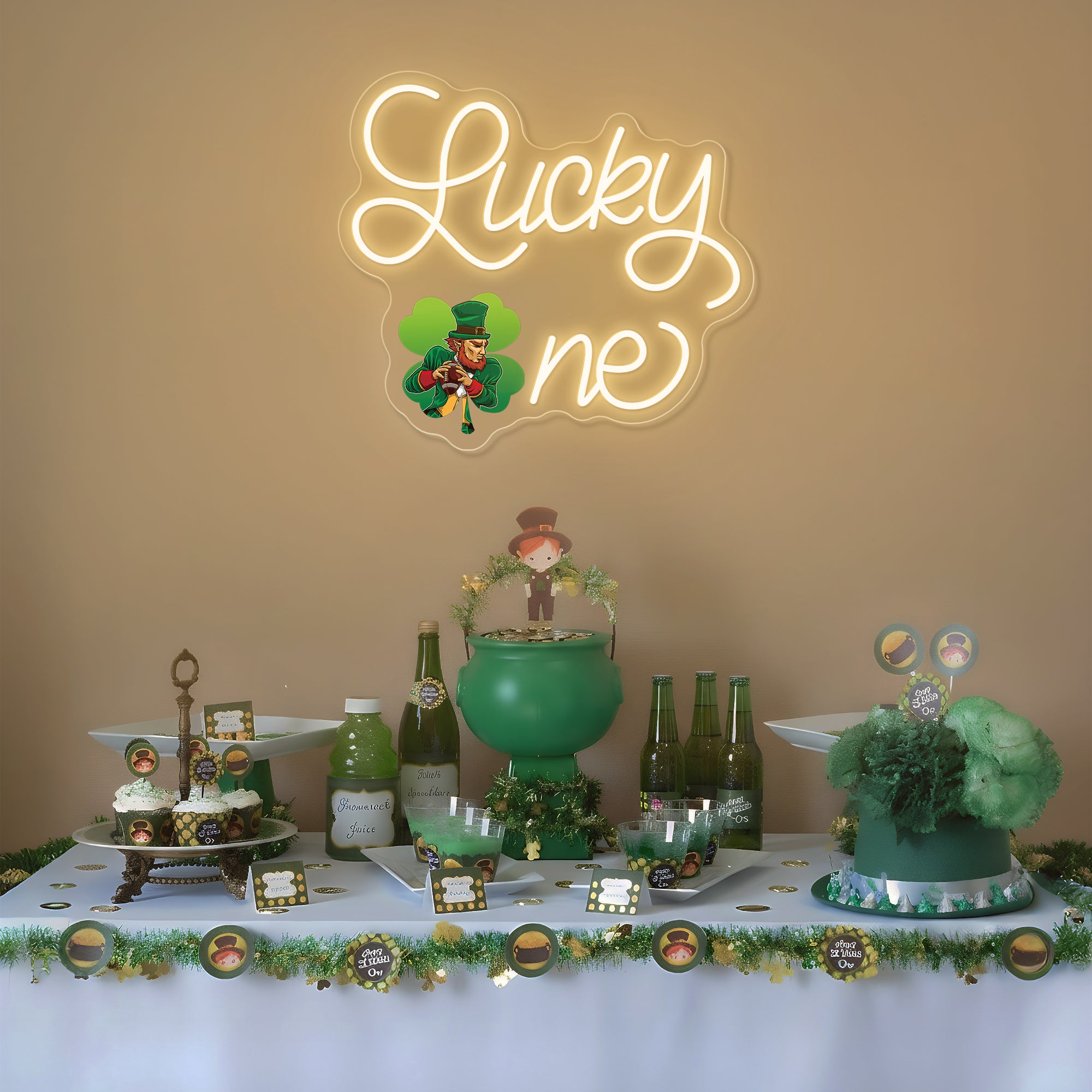 Clever & Festive Typography Design: This charming sign declares your fortunate status with Irish wit and warmth. It features the affirming phrase “Lucky One” in a bold, friendly, and celebratory font, brought to life through high-fidelity UV printing. In a delightful and symbolic twist, the letter “O” in “One” is playfully replaced by a perfectly formed, vibrant four-leaf clover—the most cherished emblem of good fortune. The intentional fusion of word and symbol transforms a simple statement of identity into a luminous talisman of luck and belonging. Expertly crafted on premium acrylic with smooth, radiant LED neon outlining the entire design, it turns a heartfelt sentiment into a glowing beacon of Irish charm.