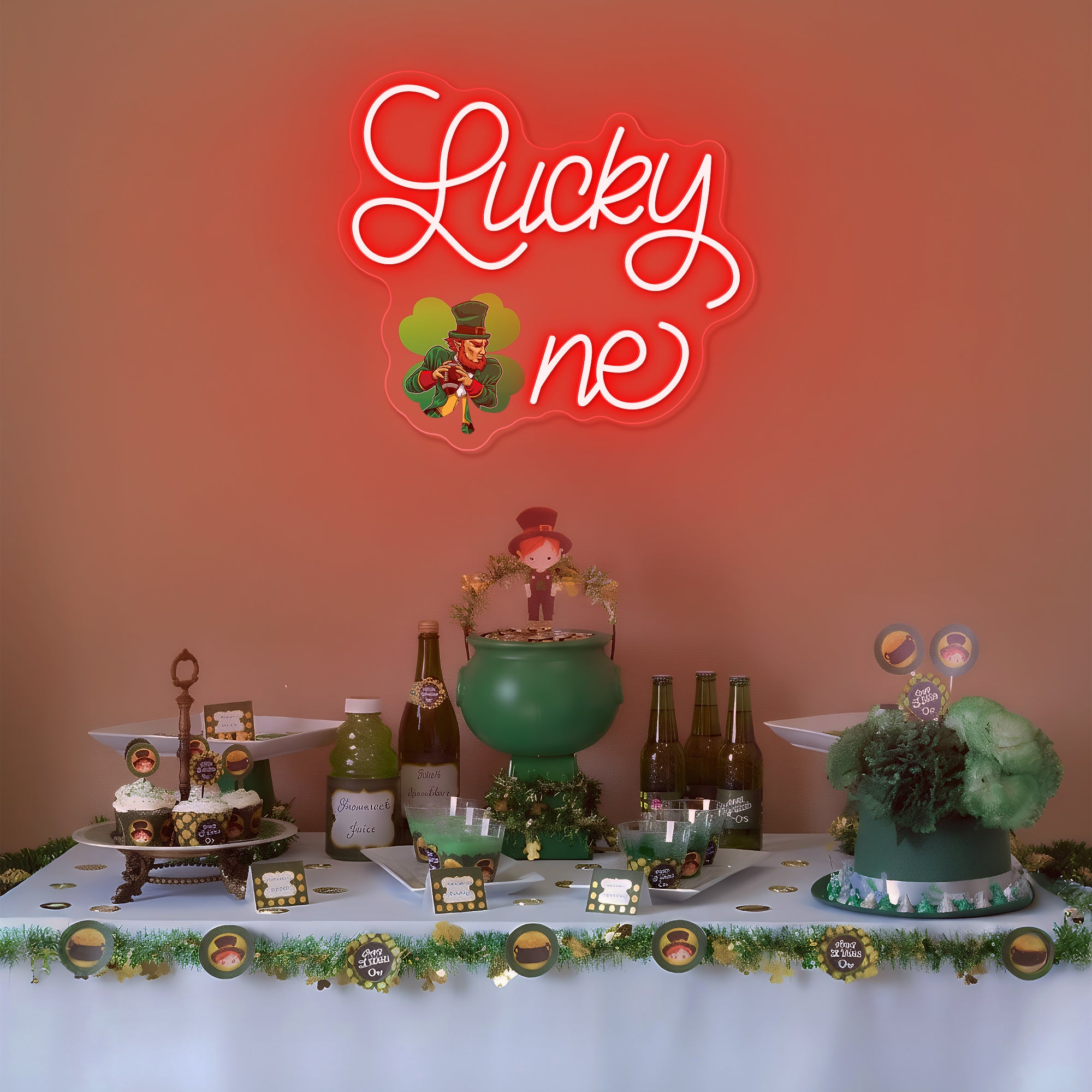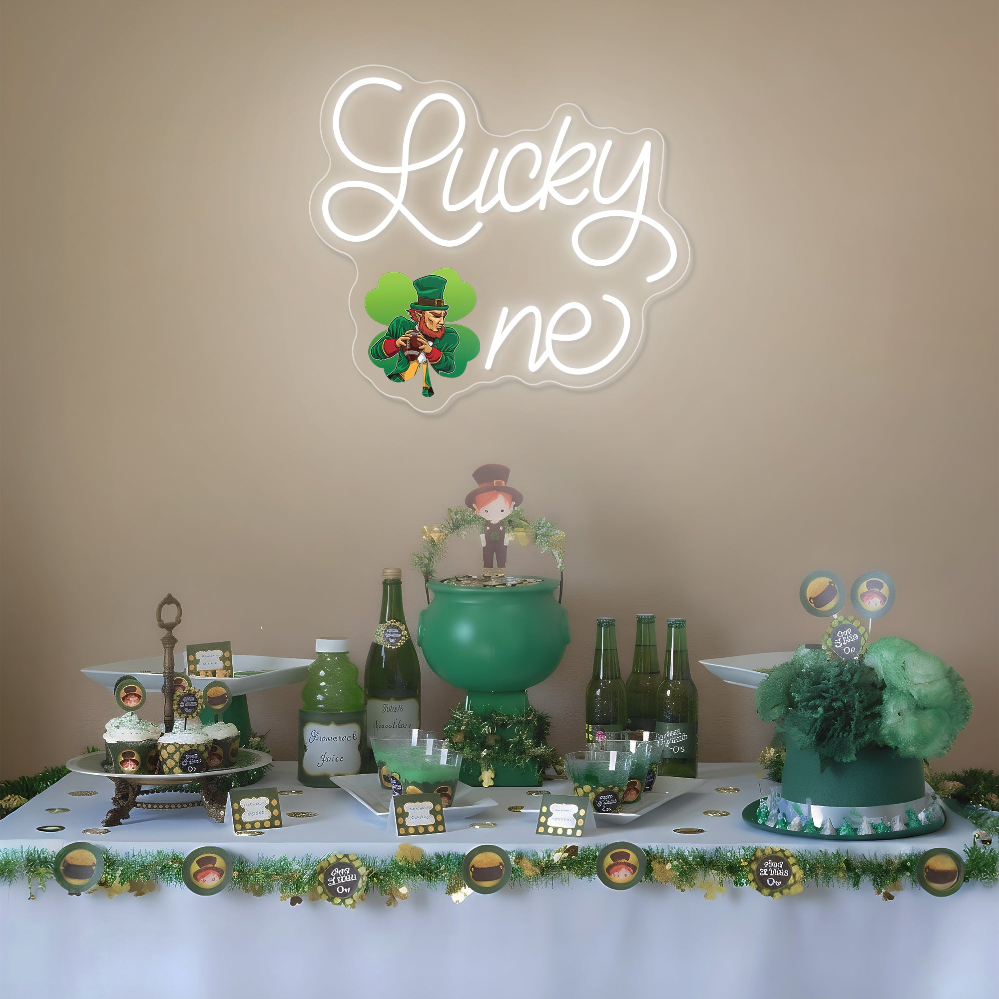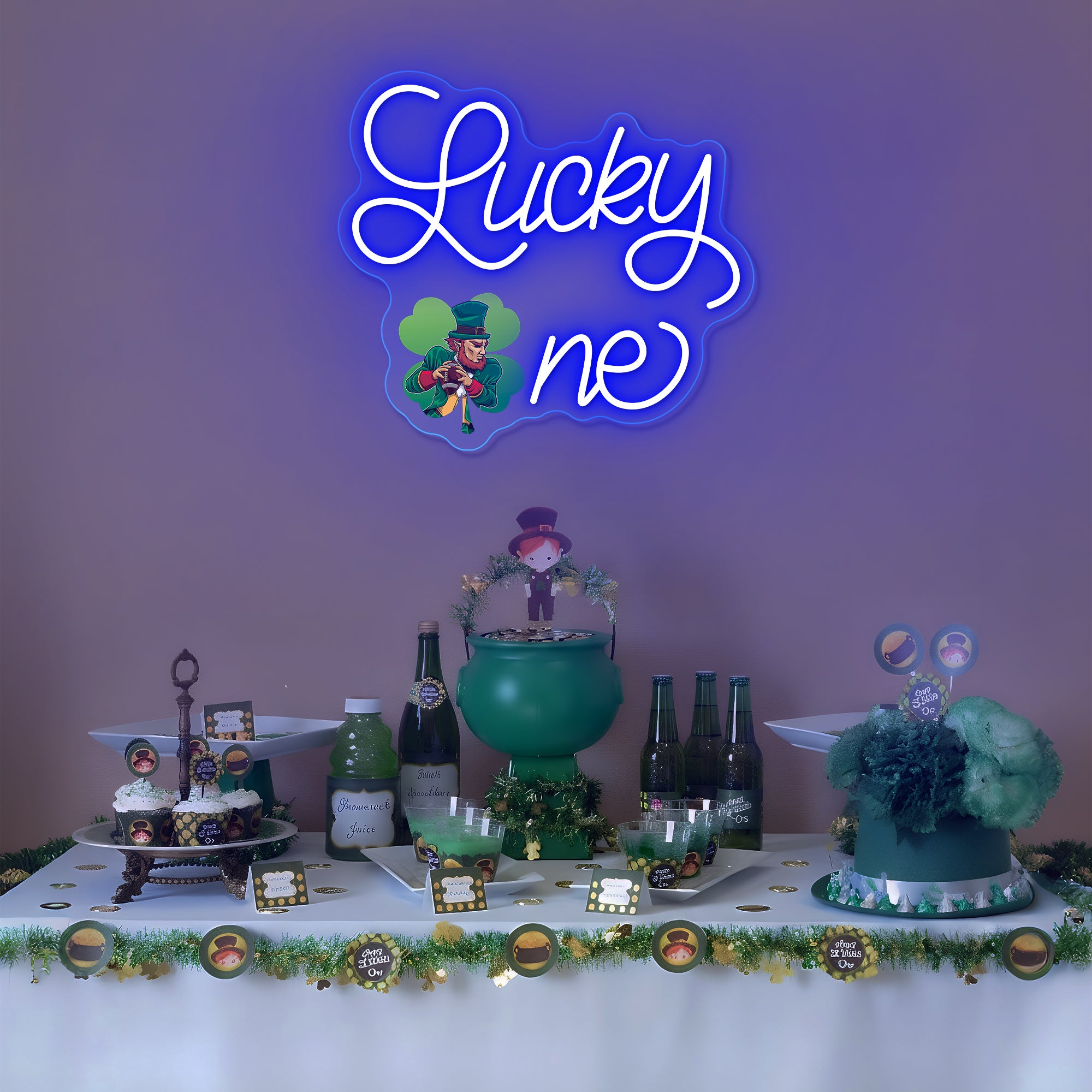 Clever & Festive Typography Design: This charming sign declares your fortunate status with Irish wit and warmth. It features the affirming phrase “Lucky One” in a bold, friendly, and celebratory font, brought to life through high-fidelity UV printing. In a delightful and symbolic twist, the letter “O” in “One” is playfully replaced by a perfectly formed, vibrant four-leaf clover—the most cherished emblem of good fortune. The intentional fusion of word and symbol transforms a simple statement of identity into a luminous talisman of luck and belonging. Expertly crafted on premium acrylic with smooth, radiant LED neon outlining the entire design, it turns a heartfelt sentiment into a glowing beacon of Irish charm.