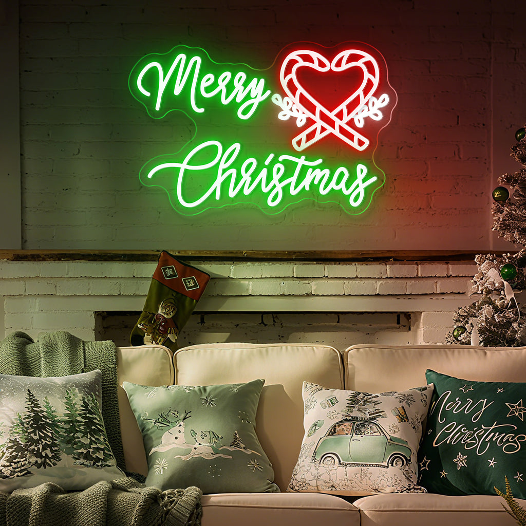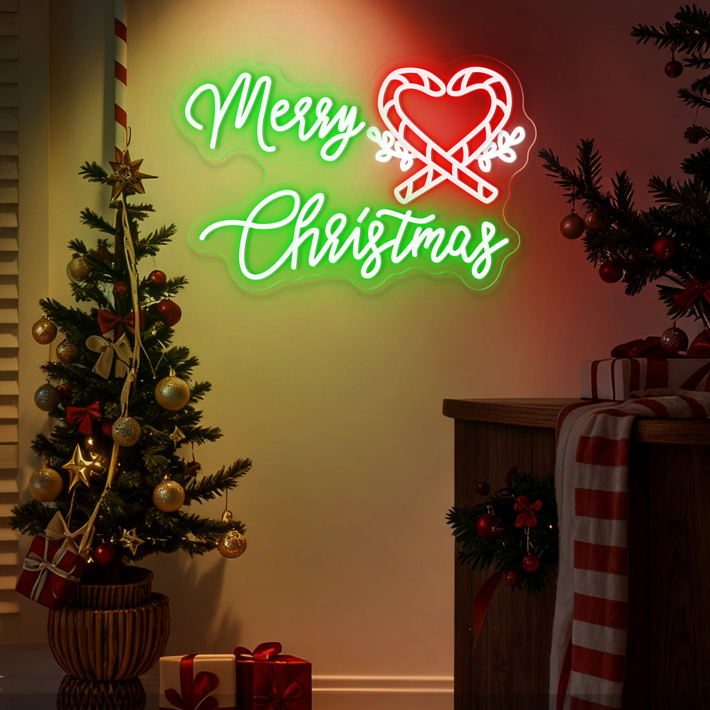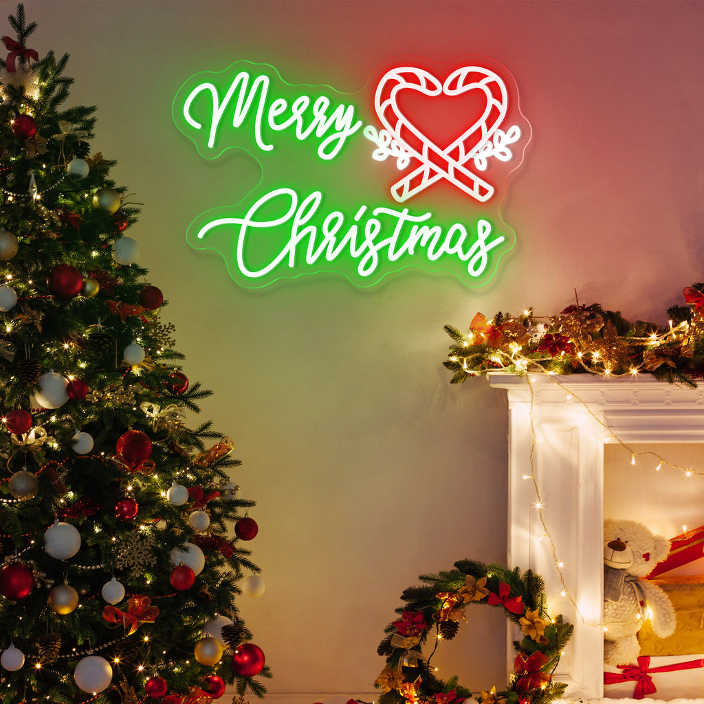 HDJSign - Merry Christmas Heart Candy Stick Neon Sign