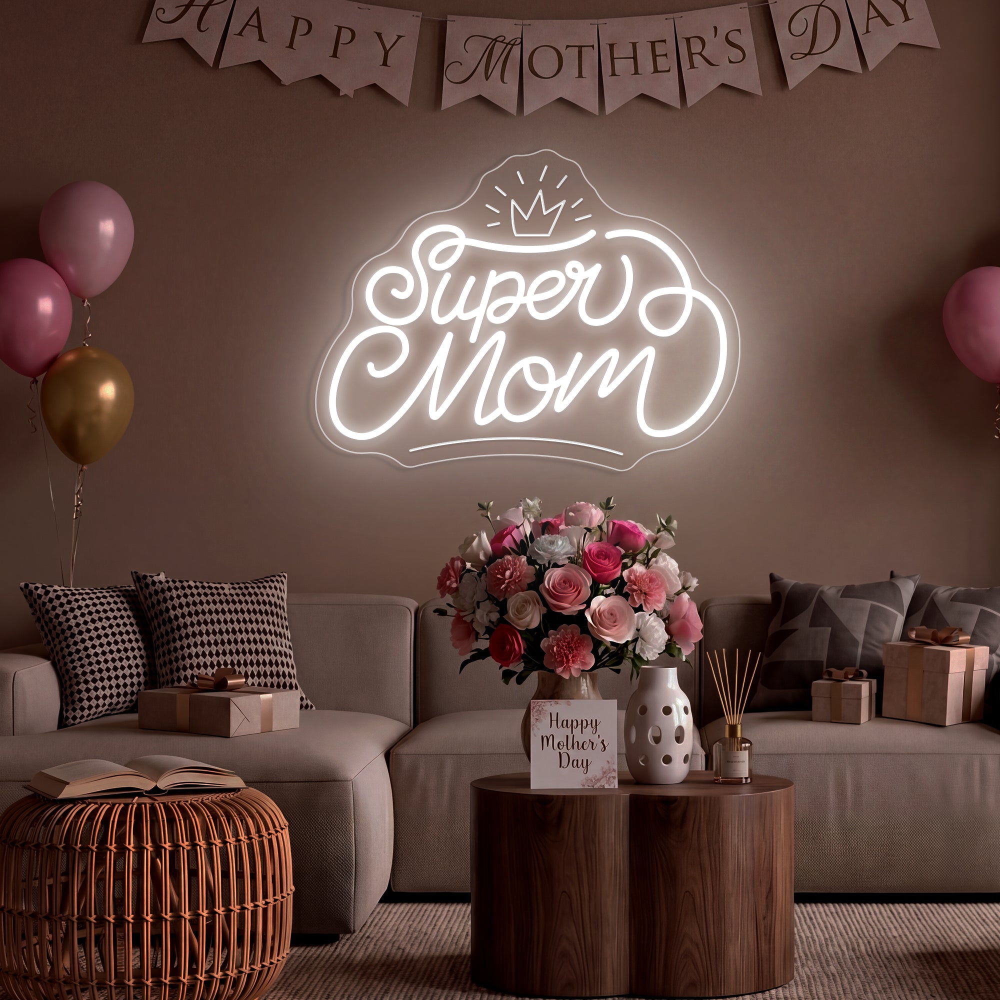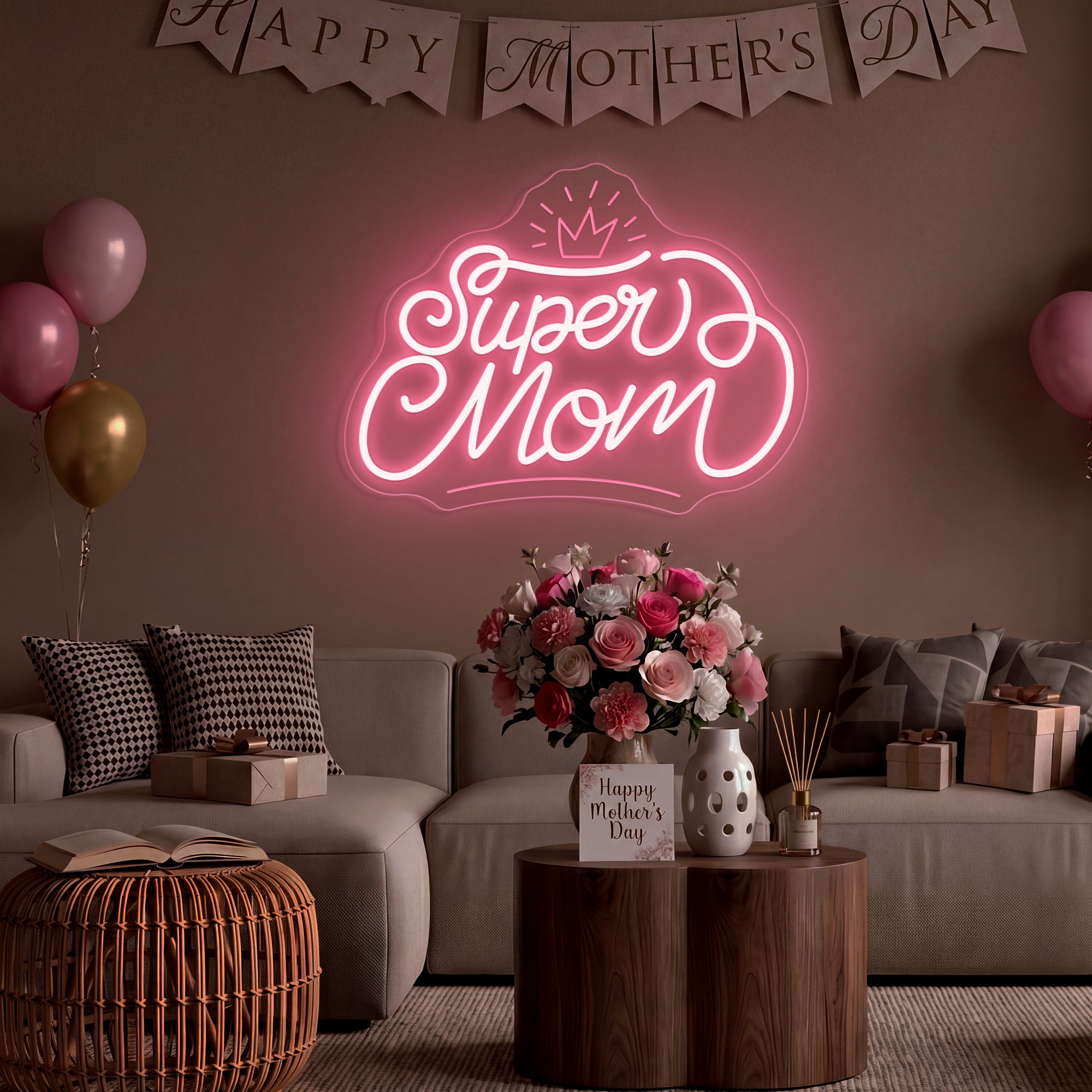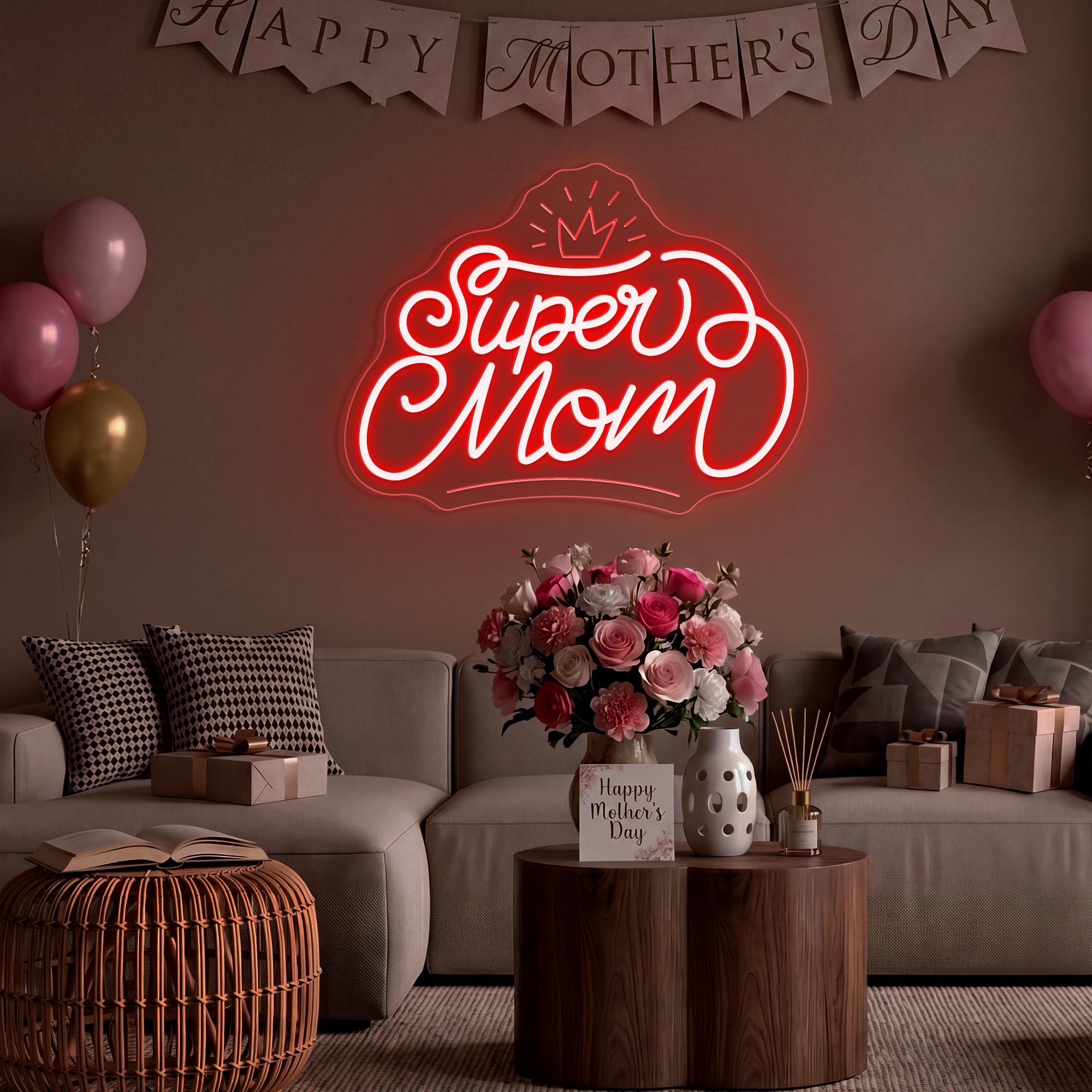 The Super Mom Mother‘s Day Gift Decor Neon Sign is a glowing tribute to the everyday hero who wears an invisible crown. This masterpiece takes the powerful title “Super Mom” and places a beautifully engraved crown beside it, creating a luminous declaration that her strength, love, and sacrifice are nothing short of royal. It’s more than a light; it is a hug from across the room, a daily reminder of her worth, and a celebration of every meal she’s made, every tear she’s dried, and every moment she’s shown up with superhuman grace—all crowned with the honor she deserves. Perfect for surprising Mom on her special day, creating a heartfelt focal point for family gatherings, or as a gift that keeps on glowing long after the celebrations end, it doesn’t just decorate a wall—it crowns her with love. It is an investment in making the most important woman in your life feel honored, cherished, and truly regal—today and always.