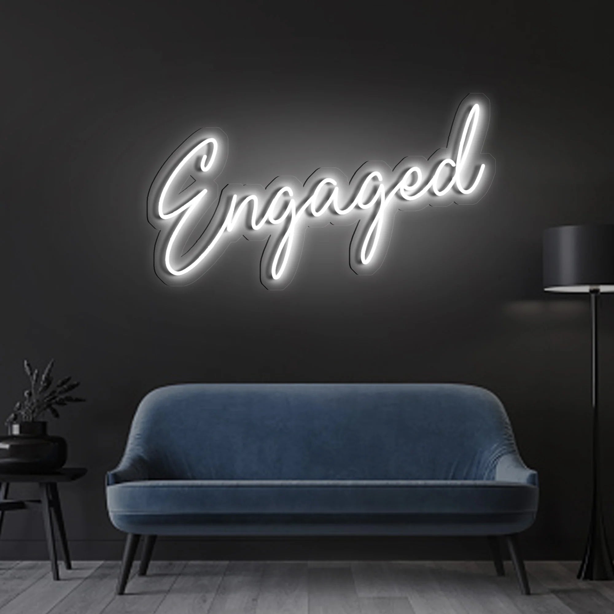 Elegant & Declarative Typography Design: This sign announces your exciting new chapter with clarity and joy. It features the single, powerful word “Engaged” in a beautifully crafted script or a clean, modern sans-serif font. The design is intentionally focused and celebratory, transforming a momentous life announcement into a luminous, elegant statement. Expertly crafted in smooth, continuous LED neon, it turns your joyful news into a radiant and permanent declaration for all to see.