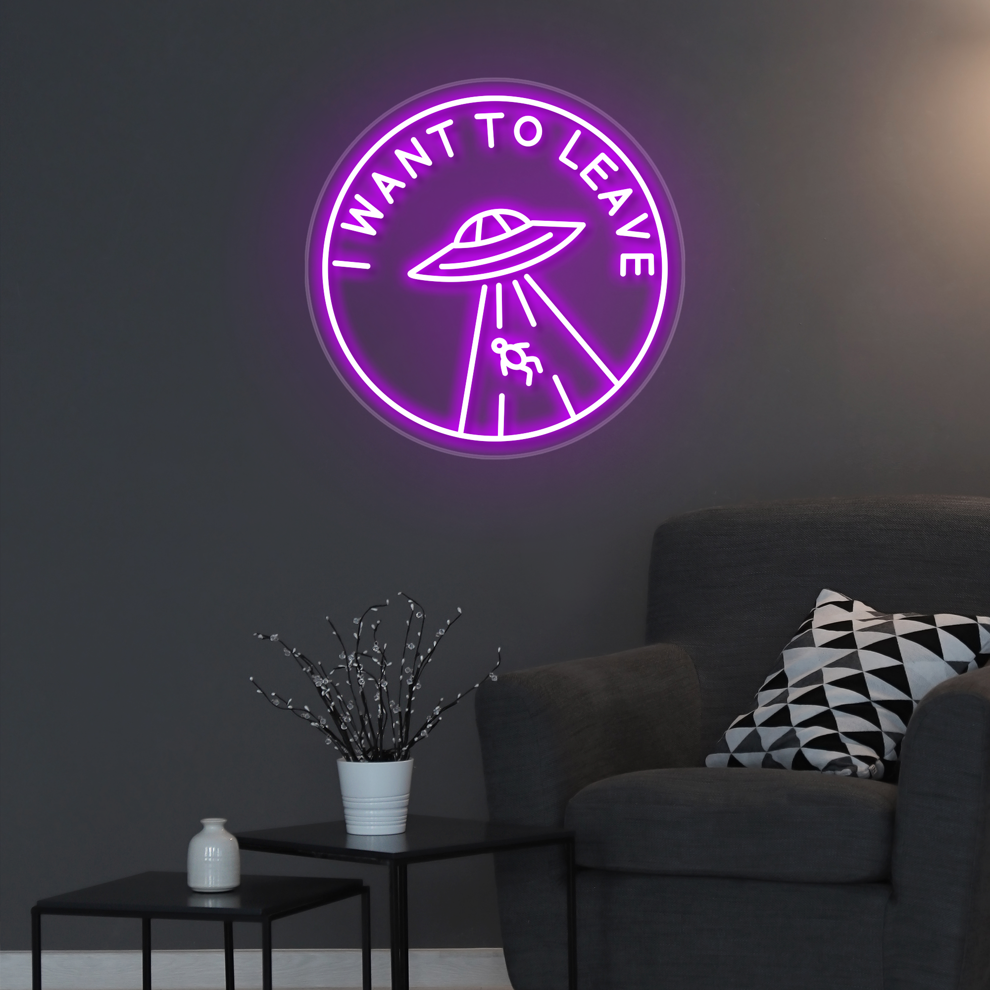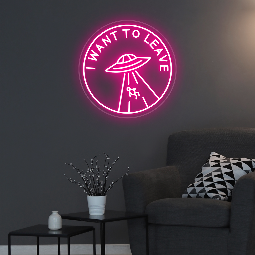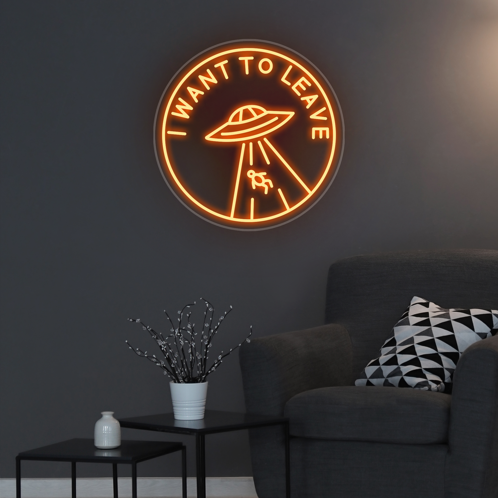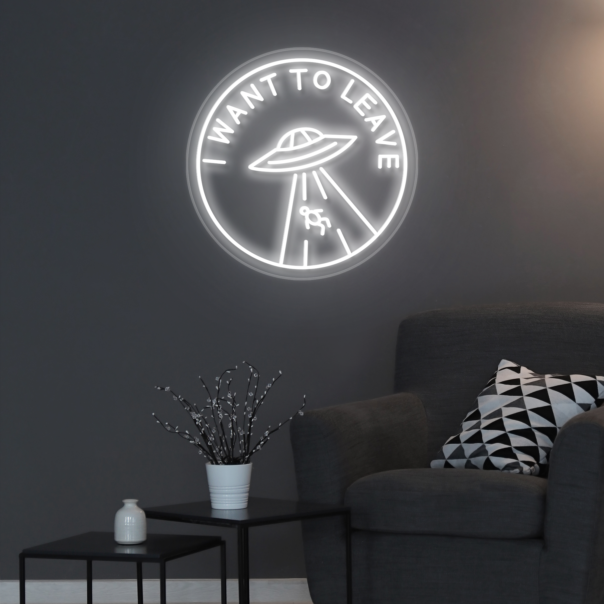 I Want to Leave Space Led Neon Sign brings cosmic humor to everyday life with this cleverly designed escape fantasy. The playful scene of a figure being lifted skyward in a beam of light while carrying the heartfelt message "I Want to Leave" creates an instant connection with anyone who's ever dreamed of a dramatic exit from awkward conversations, boring meetings, or stressful situations. Perfect for offices, game rooms, studios, or personal spaces, this sign serves as a lighthearted reminder that sometimes we all need an imaginary escape route. The whimsical design balances cosmic adventure with relatable humor, making it both an entertaining decorative piece and a subtle commentary on the human desire for occasional disappearance.