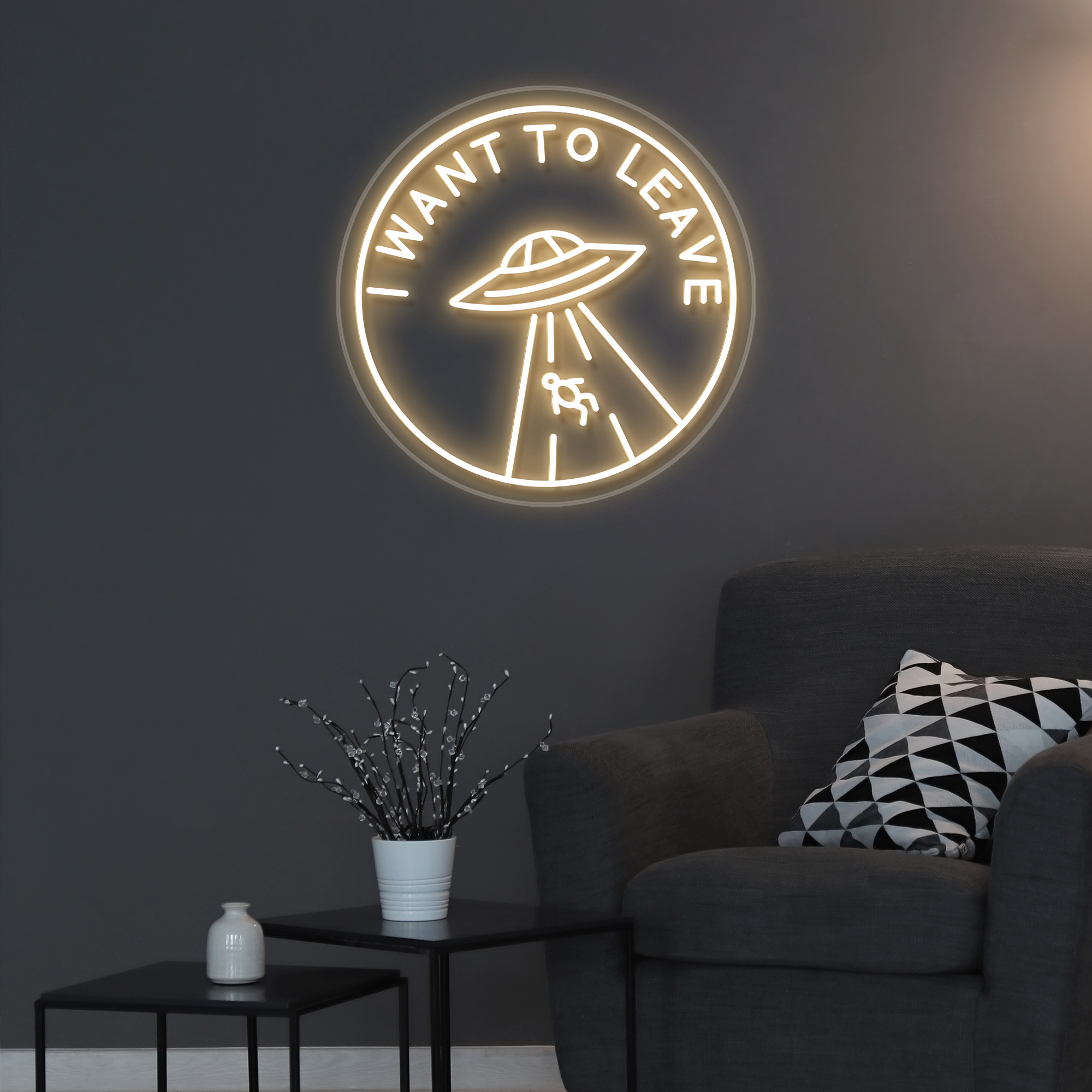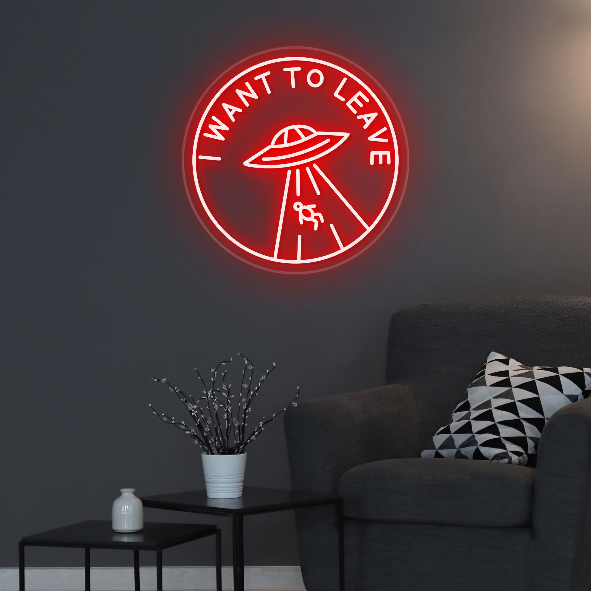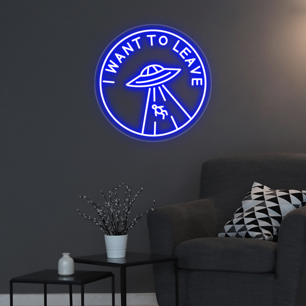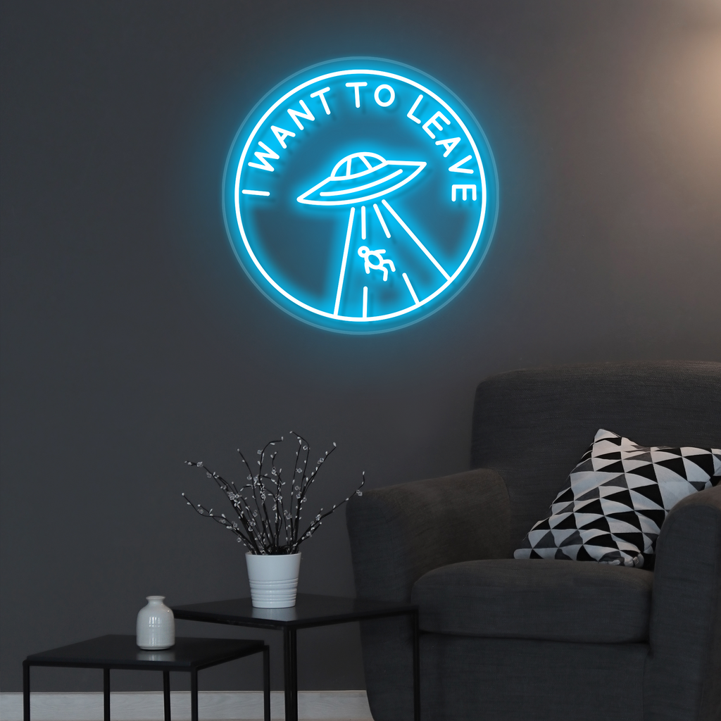 I Want to Leave Space Led Neon Sign brings cosmic humor to everyday life with this cleverly designed escape fantasy. The playful scene of a figure being lifted skyward in a beam of light while carrying the heartfelt message "I Want to Leave" creates an instant connection with anyone who's ever dreamed of a dramatic exit from awkward conversations, boring meetings, or stressful situations. Perfect for offices, game rooms, studios, or personal spaces, this sign serves as a lighthearted reminder that sometimes we all need an imaginary escape route. The whimsical design balances cosmic adventure with relatable humor, making it both an entertaining decorative piece and a subtle commentary on the human desire for occasional disappearance.
