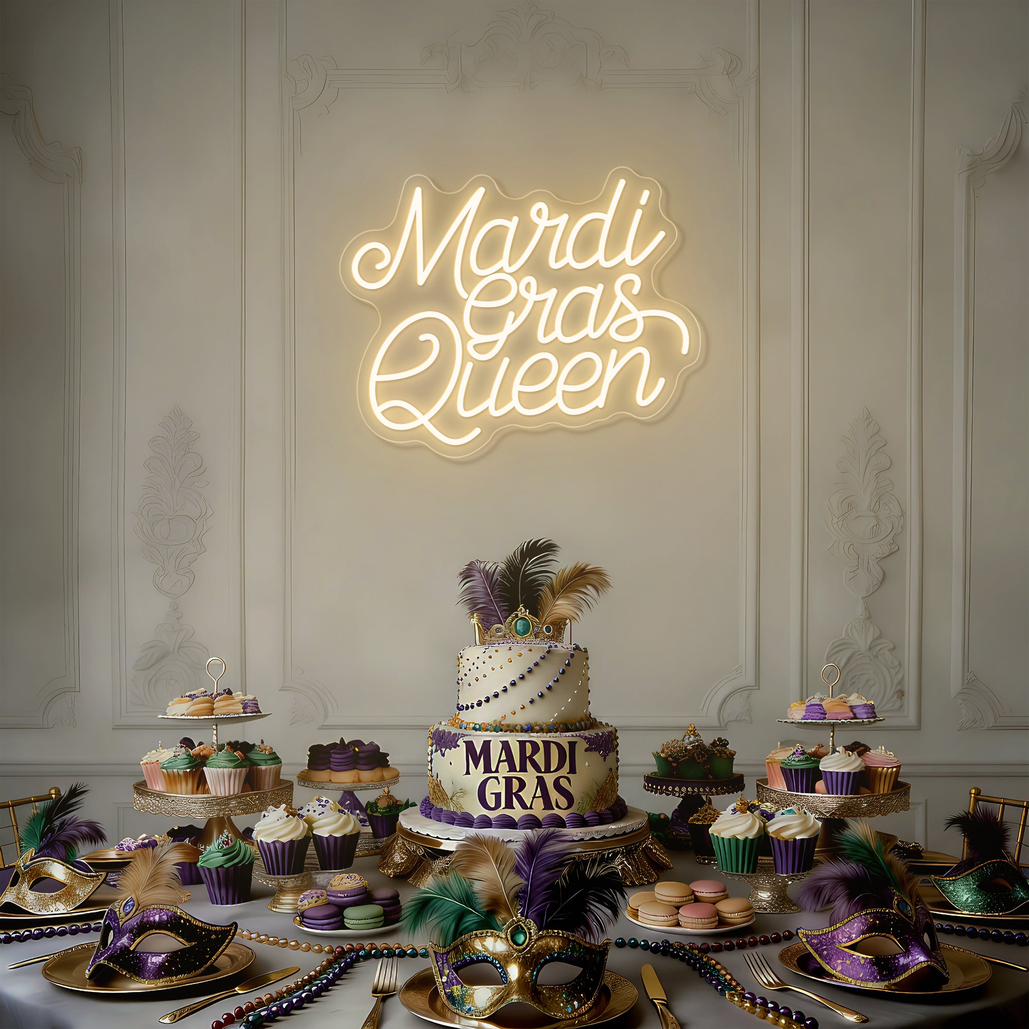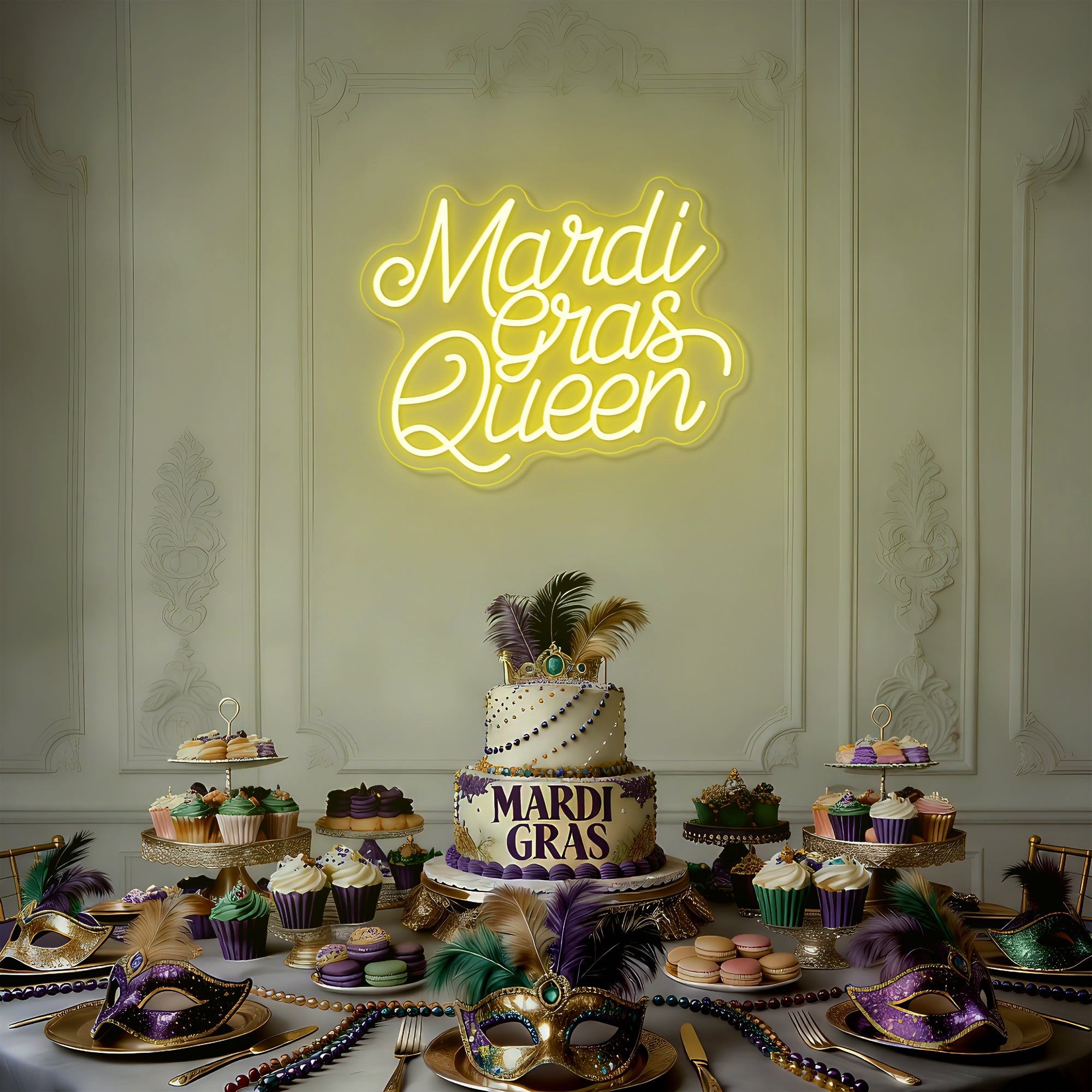The Mardi Gras Queen Festival Decor Neon Sign is a luminous tribute to the spirit of Carnival royalty. This piece transforms a powerful title into a personal statement of festivity and flair. It’s more than a light; it is a wearable crown in light form, empowering everyone who sees it to embrace the joy and boldness of the season. Perfect for Mardi Gras parties, themed events, or as a year-round reminder of your own celebratory spirit, it doesn’t just decorate a wall—it crowns it. It ensures your space radiates the opulent, joyful, and commanding energy of a true Mardi Gras sovereign.
