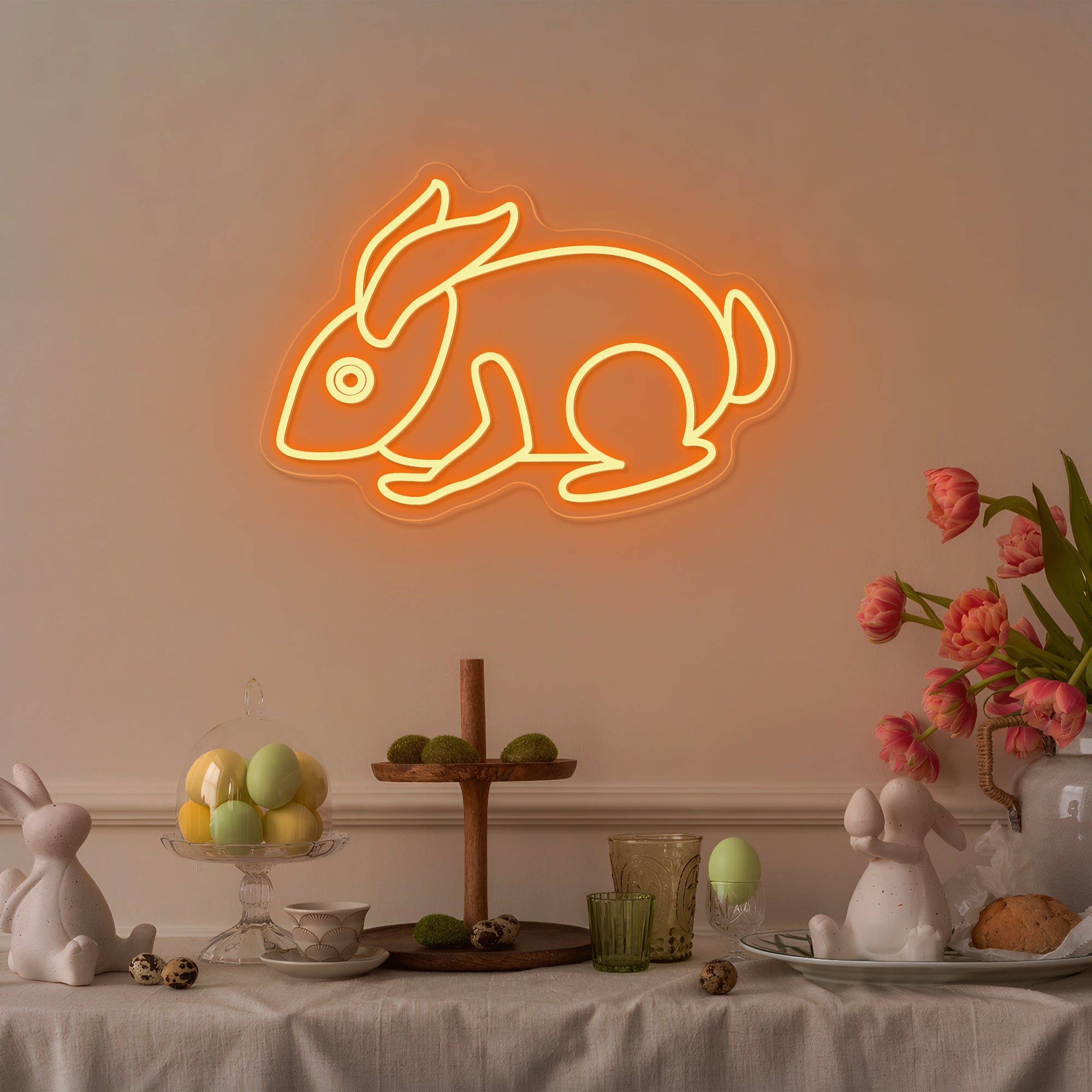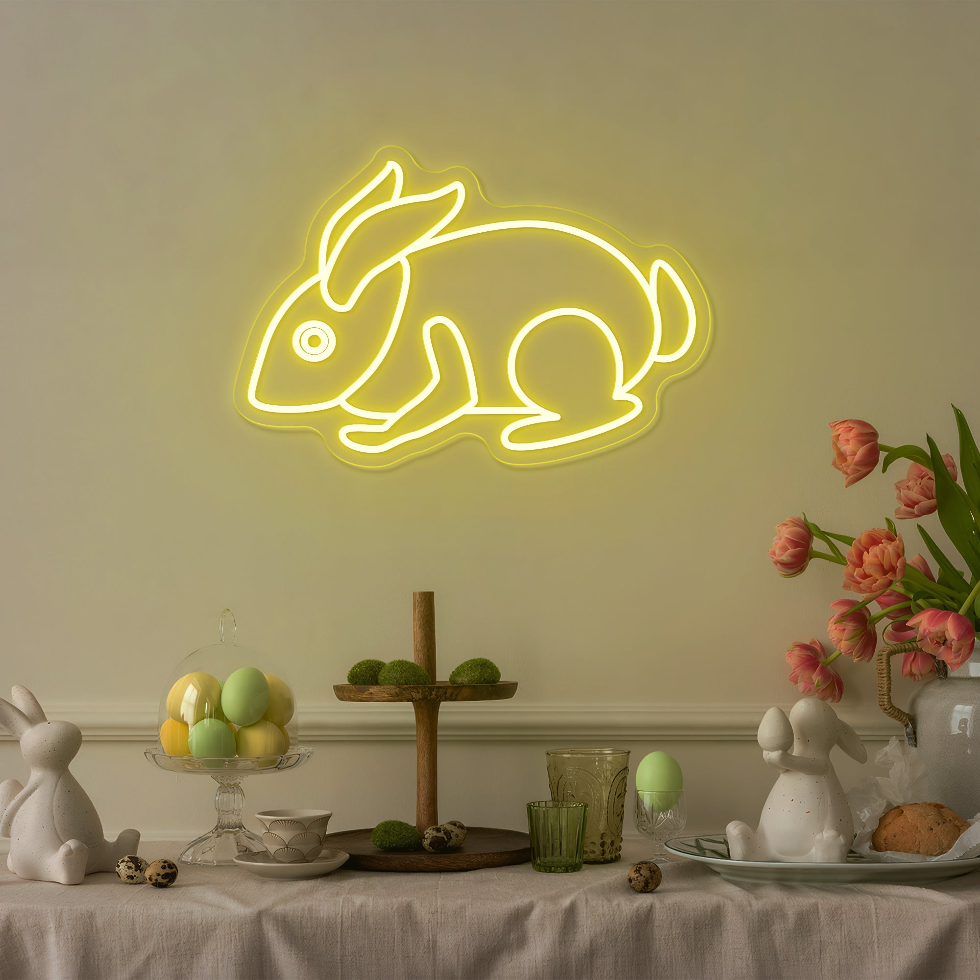 Creates a Joyful & Family-Friendly Holiday Atmosphere: More than decor, this piece is a visual expression of Easter's happiest spirit. It instantly transforms a living room, entryway, child's bedroom, kitchen, or holiday gathering space into a celebration of spring and renewal. It fosters an environment of joy, wonder, and family warmth, serving as a stunning, photogenic focal point for Easter egg hunts, family brunches, and holiday photos. It doesn't just decorate; it brings the magic of the Easter Bunny to life, glowing warmly in your home.