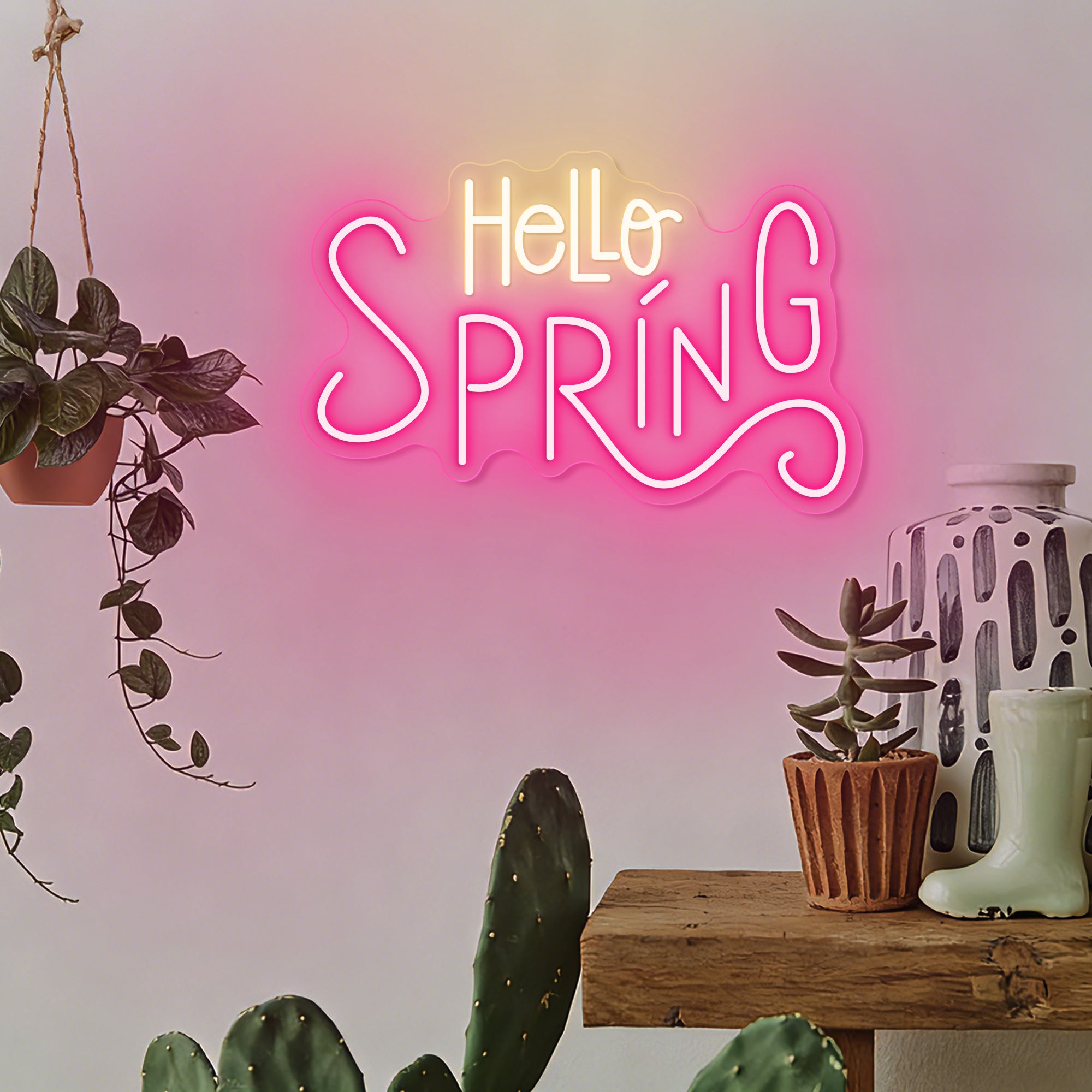 The Hello Spring Neon Sign is a simple and spirited way to celebrate the turn of the season. With its clean lines and vibrant glow, it captures the essence of spring—renewal, light, and growth—in a single, luminous phrase. It serves as a daily visual reminder to embrace fresh starts and the positive energy that spring brings. Perfect for greenhouses, sunrooms, garden centers, cafes, or any home or commercial space wanting to welcome the season with style, it effortlessly adds a touch of contemporary cheer to any wall.