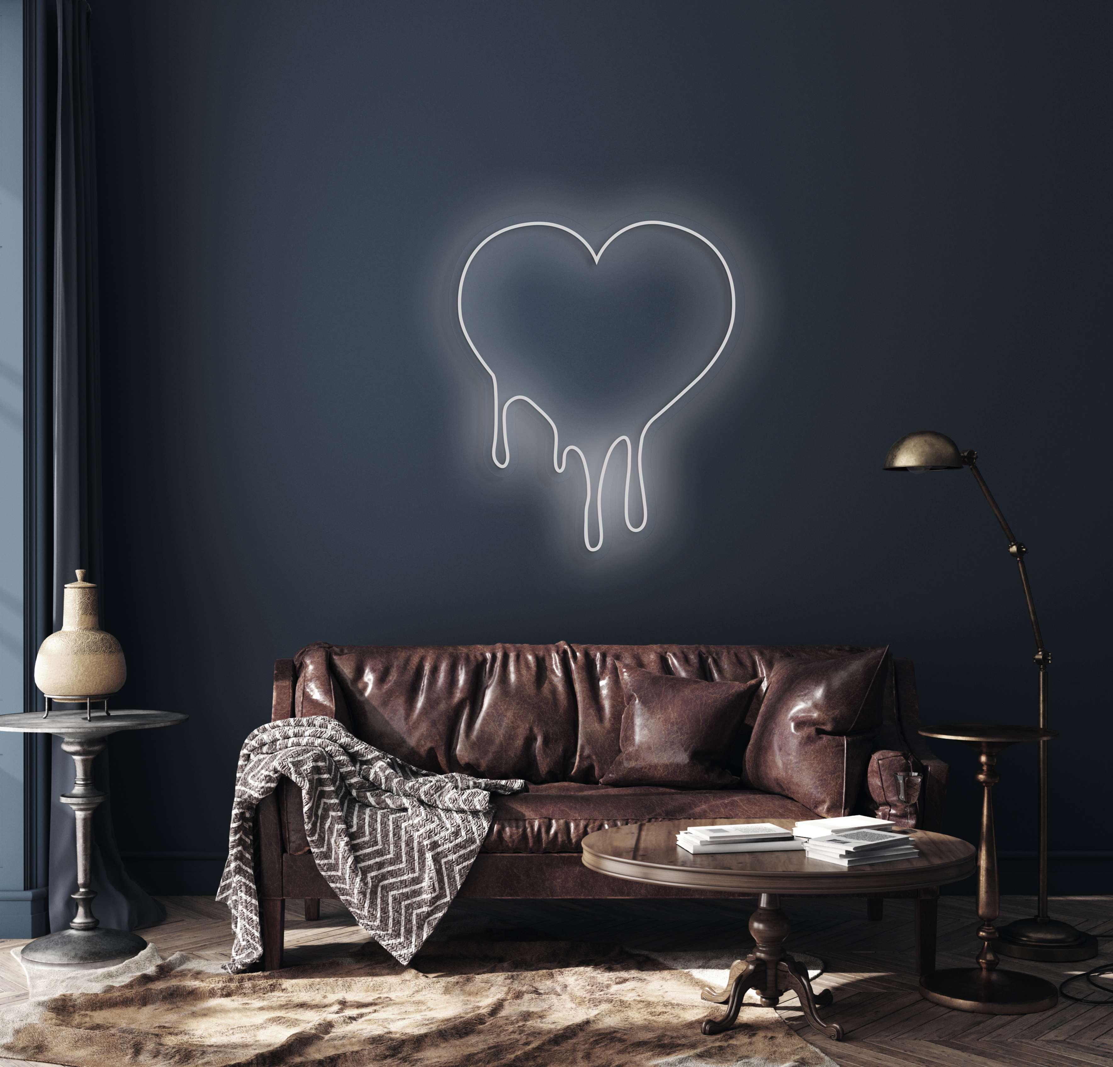 Melting & Romantic Graphic Design: This captivating sign captures love in its sweetest, most fluid form. It features a stunning, stylized heart that appears to be deliciously melting or dripping downward—like warm chocolate, golden honey, or rose gold glaze, frozen in a perpetual moment of surrender. The design is intentionally organic, sensuous, and symbolic, transforming the universal emblem of love into a luminous icon of devotion that flows, yields, and gives without end. With no text required, the dripping heart speaks its own tender language of passion and commitment. Expertly crafted in smooth, continuous LED neon, it turns an abstract emotion into a radiant, sculptural statement for your celebration.