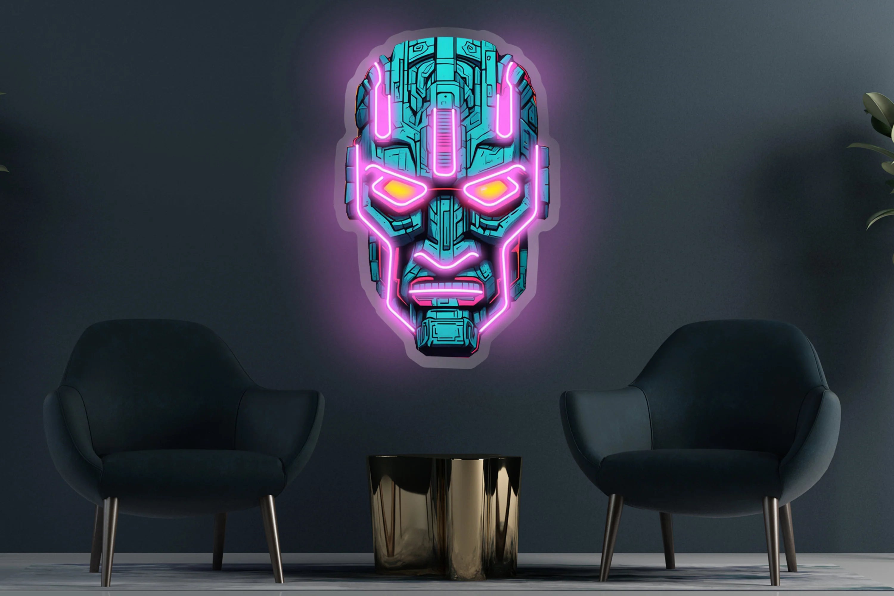 Upgrade your room's ambiance with the Robot Head Neon Sign. The futuristic robot head design adds a unique touch to any space. With the neon sign, you can transform your room into a modern and vibrant atmosphere. Bring your love for sci-fi to life with this eye-catching piece.