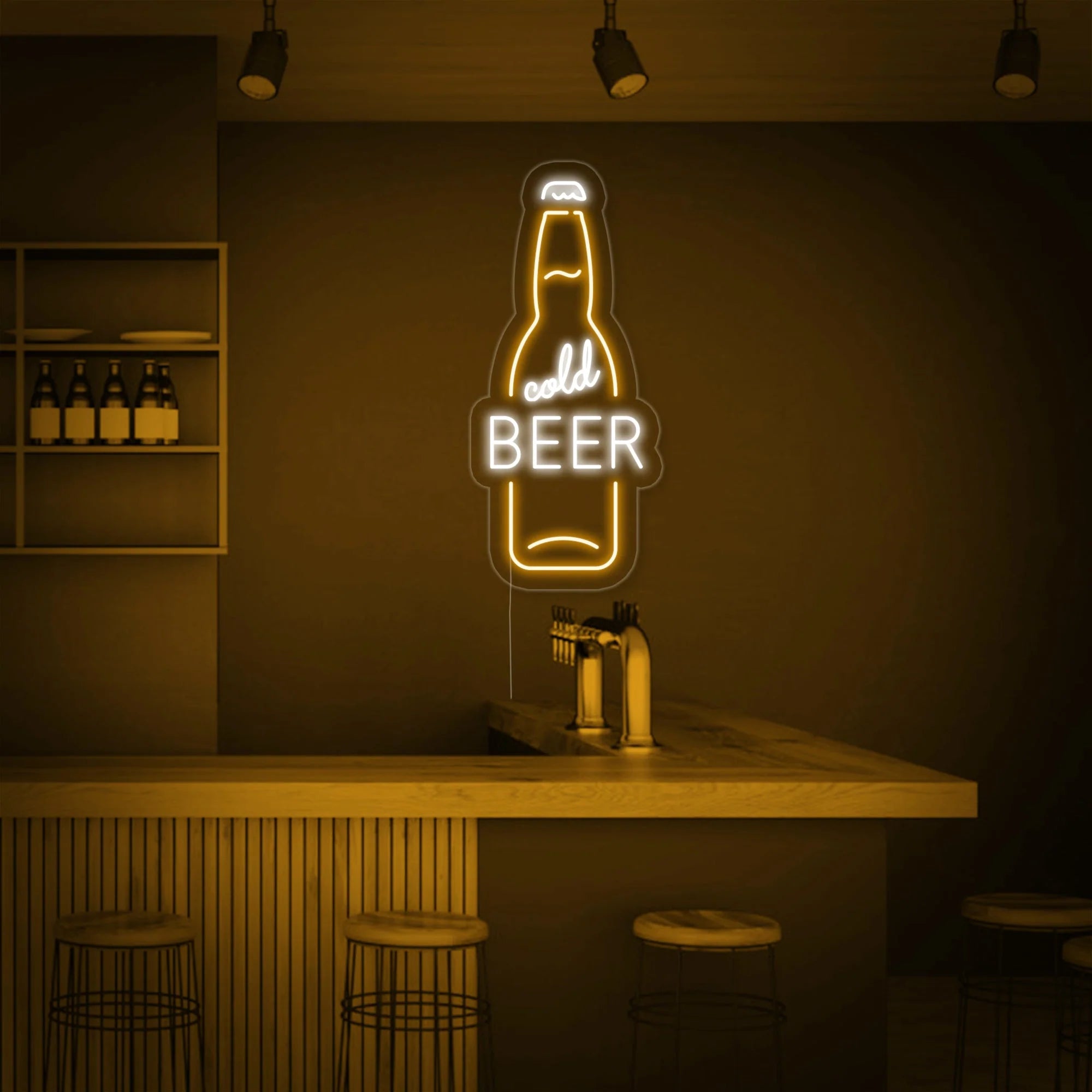 HDJSign - Cold Beer Bottle Bar Neon Sign