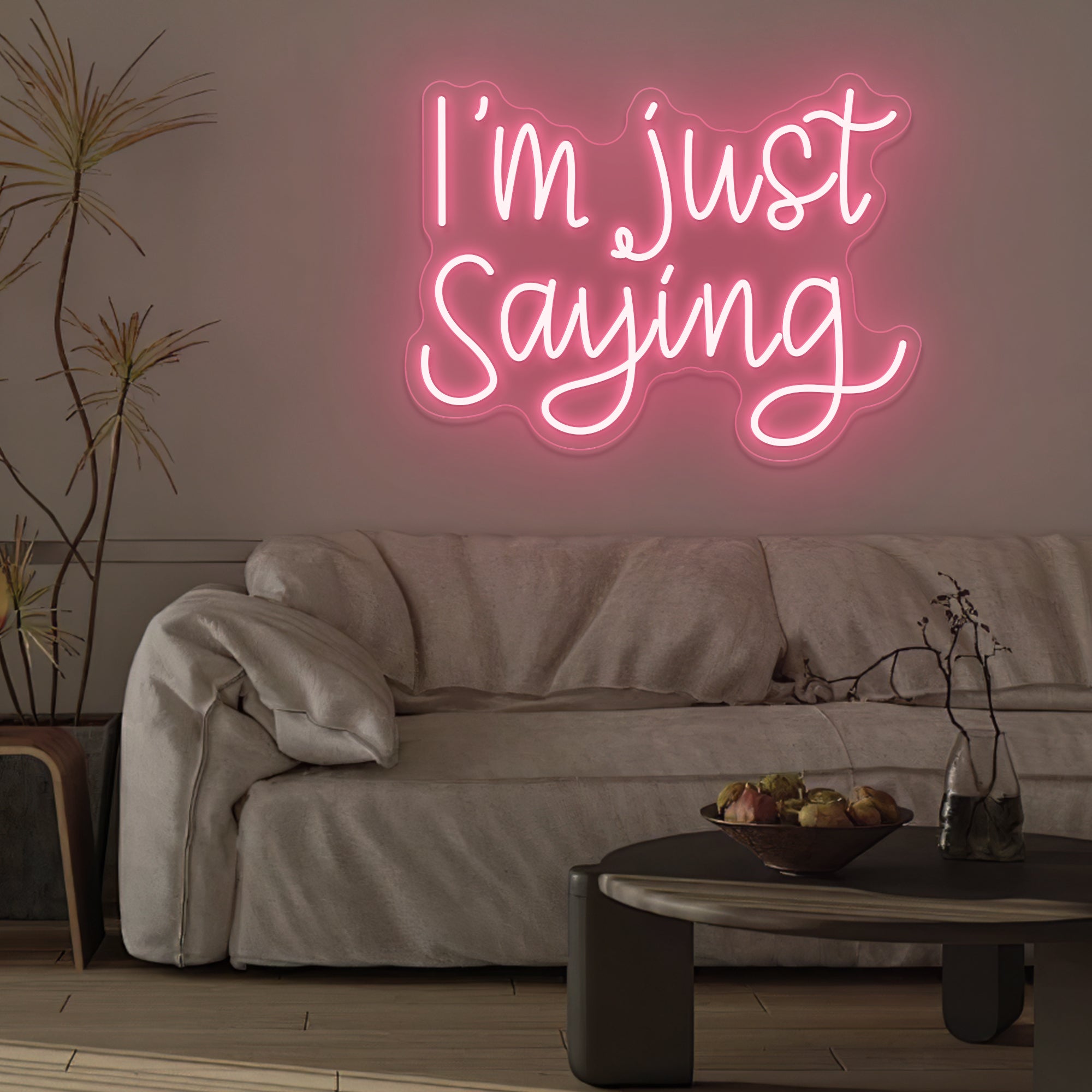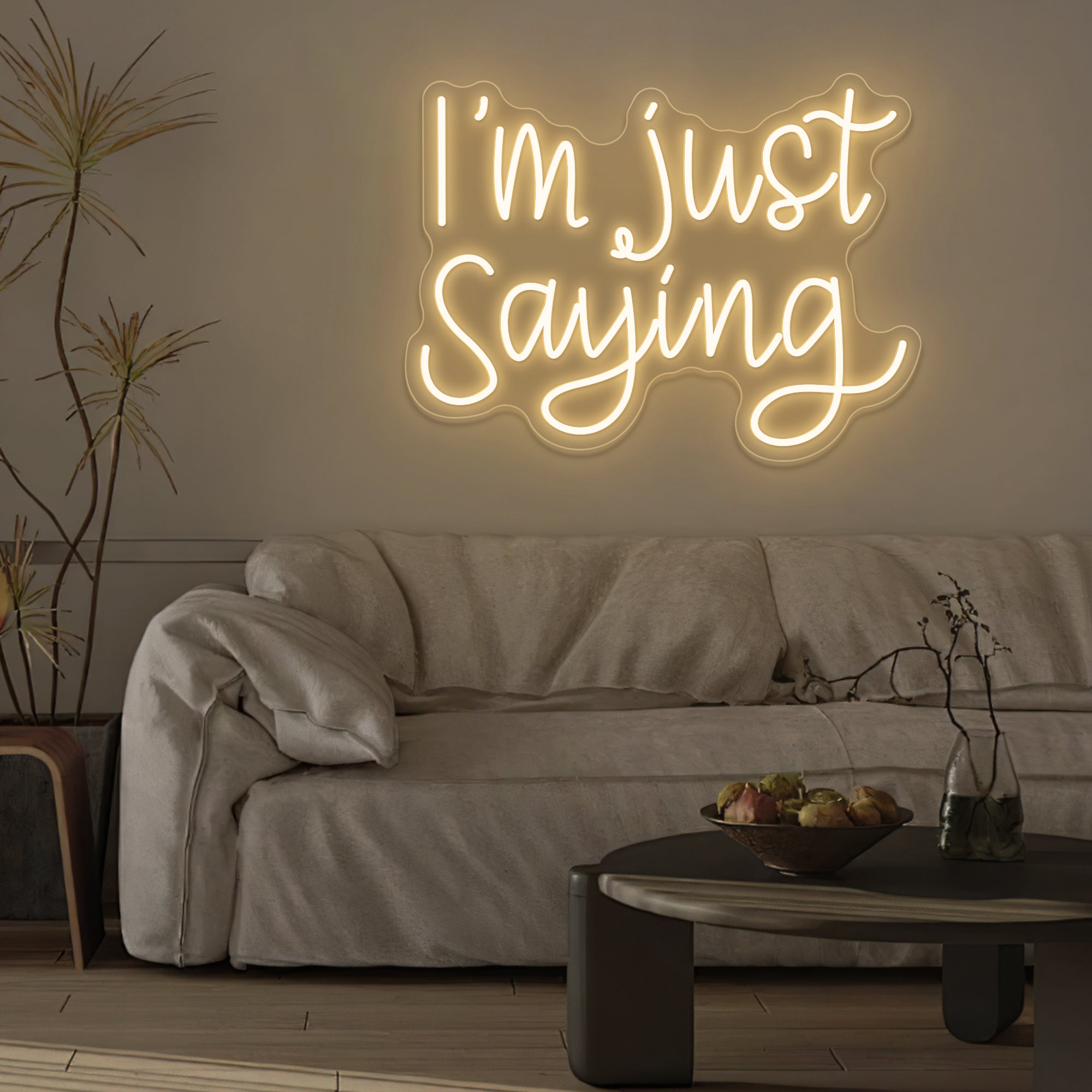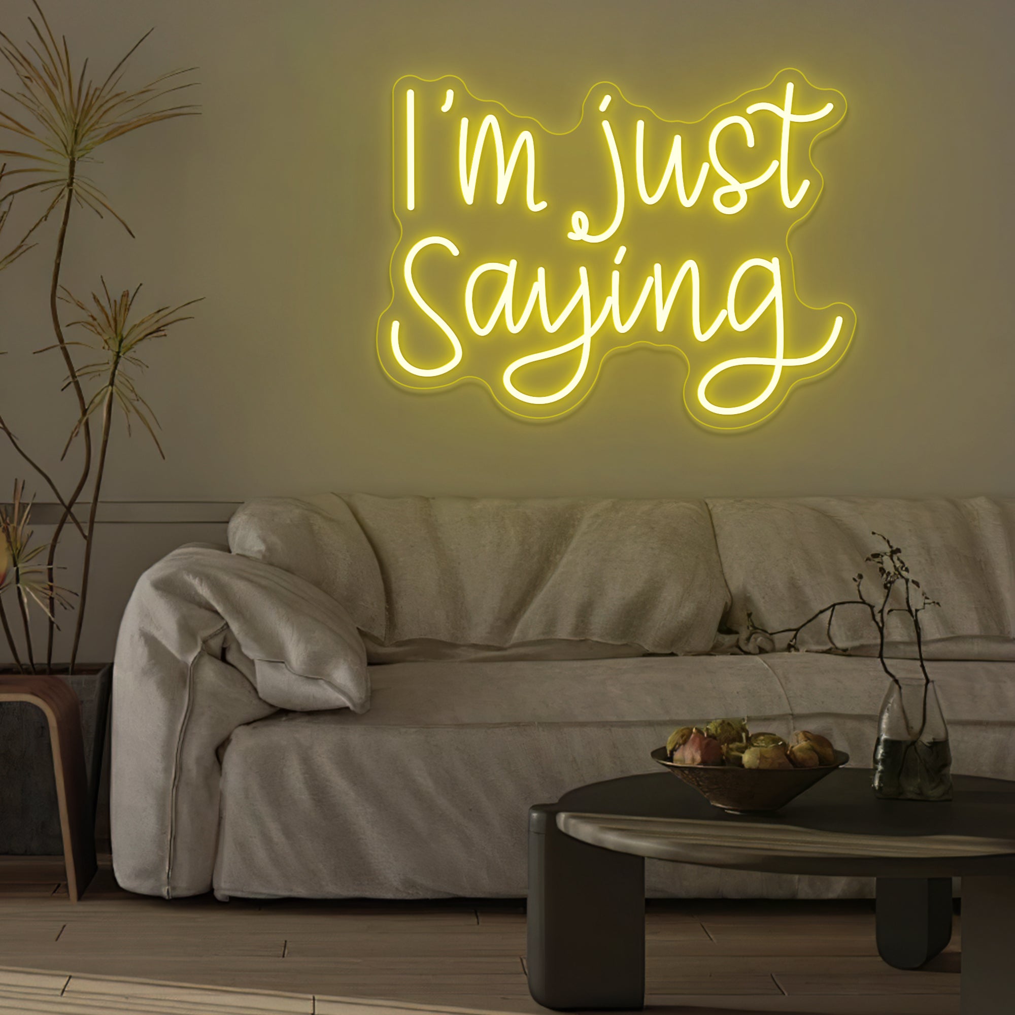 Casual & Conversational Typography: This sign captures a modern, offhand phrase with the relatable quote “I’M JUST SAYING” rendered in a clean, approachable font—often a smooth, casual script or a relaxed sans-serif. Designed with crisp dual-line LED neon, the text feels like a friendly aside made permanent, turning a casual expression into a witty and thought-provoking piece of wall art that invites a smile or a nod of agreement.