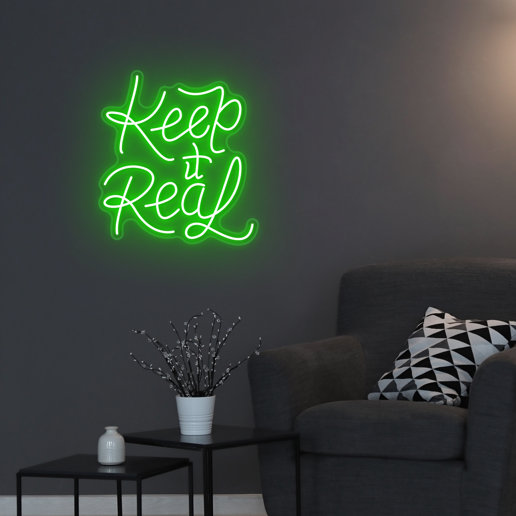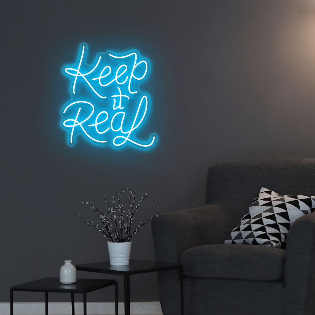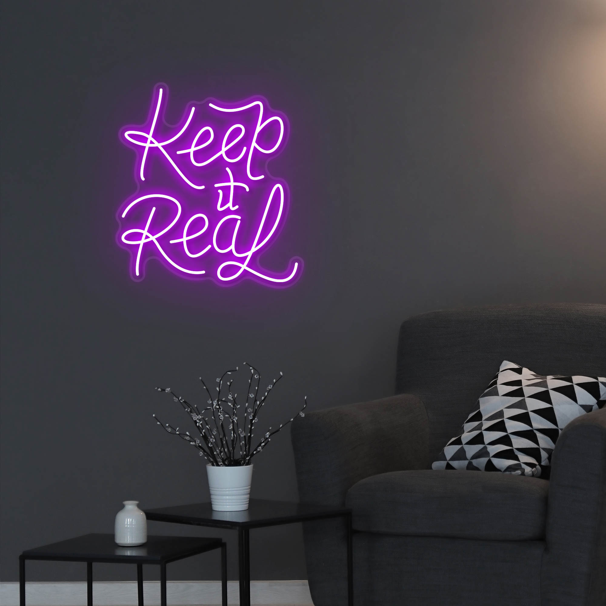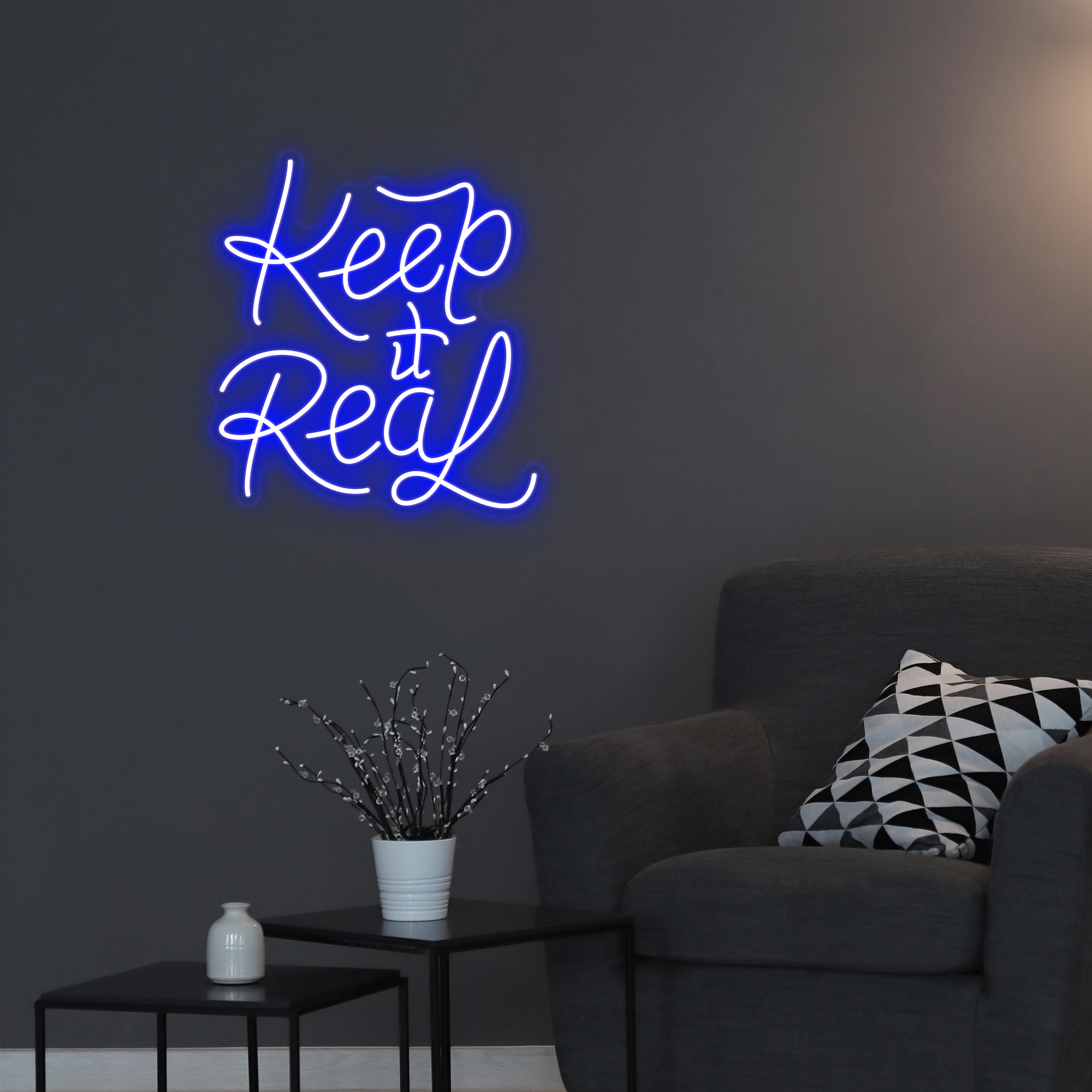Authentic Typography Design: This sign features the sincere phrase “KEEP IT REAL” in a clean, modern script crafted from smooth LED neon. Its straightforward design delivers a powerful message of authenticity with minimalist style.