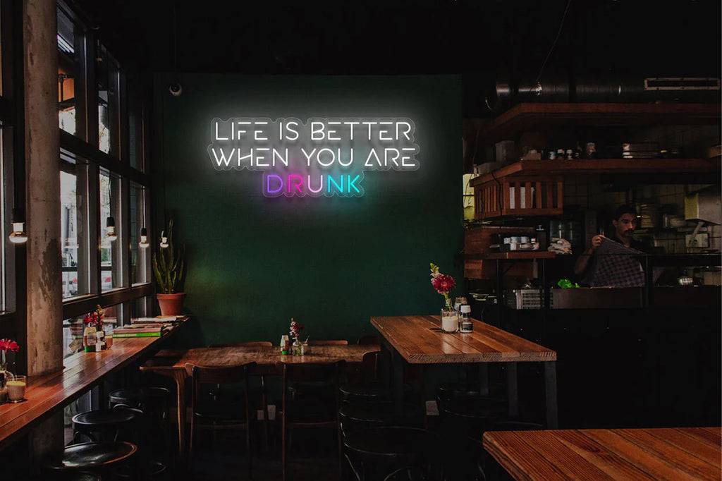 life is better when you are drunk Neon Art Signboard, Bar Pub Led Sign Wall Art, Wine Bar Neon Wall Sign, Beer Club Led Light For Wall Decor