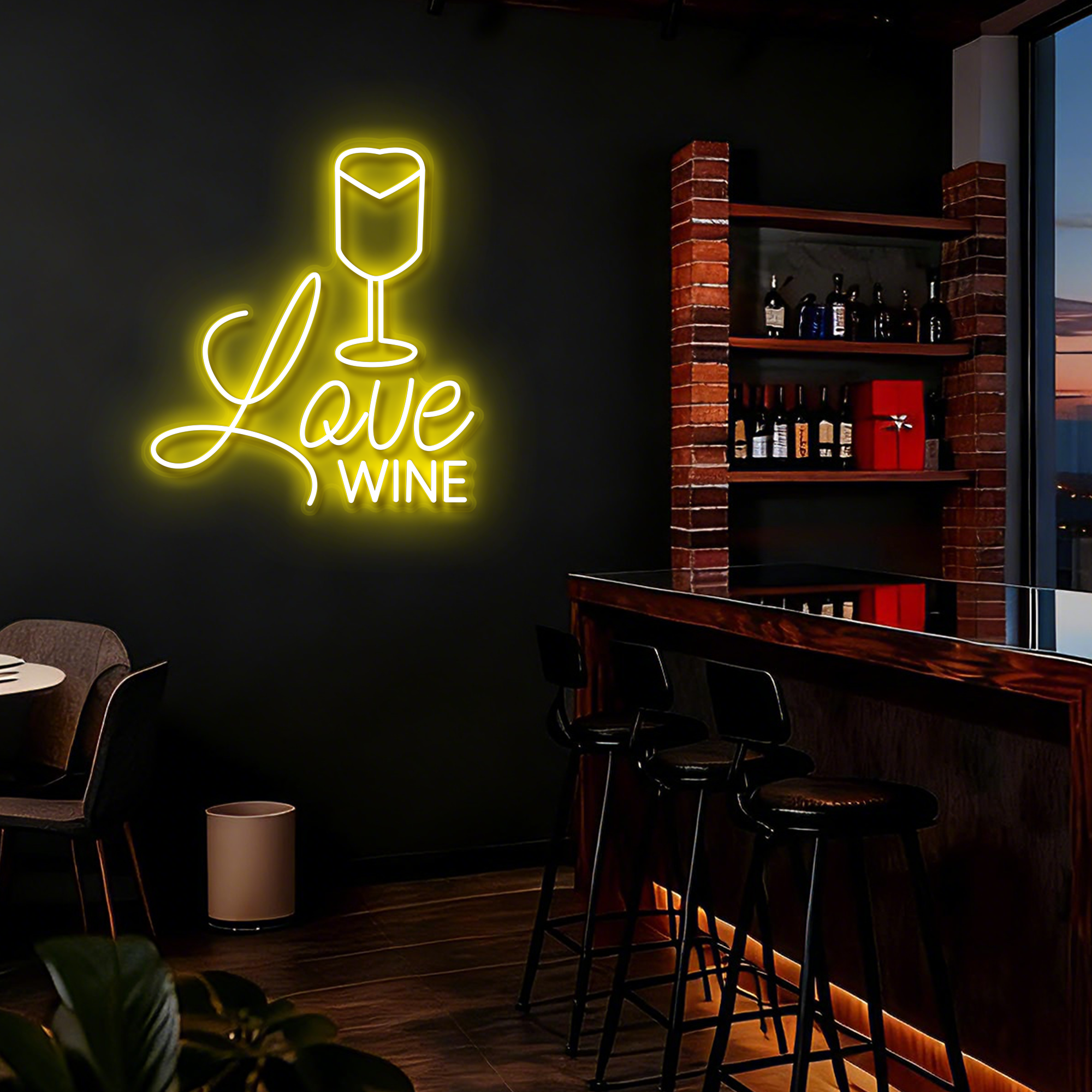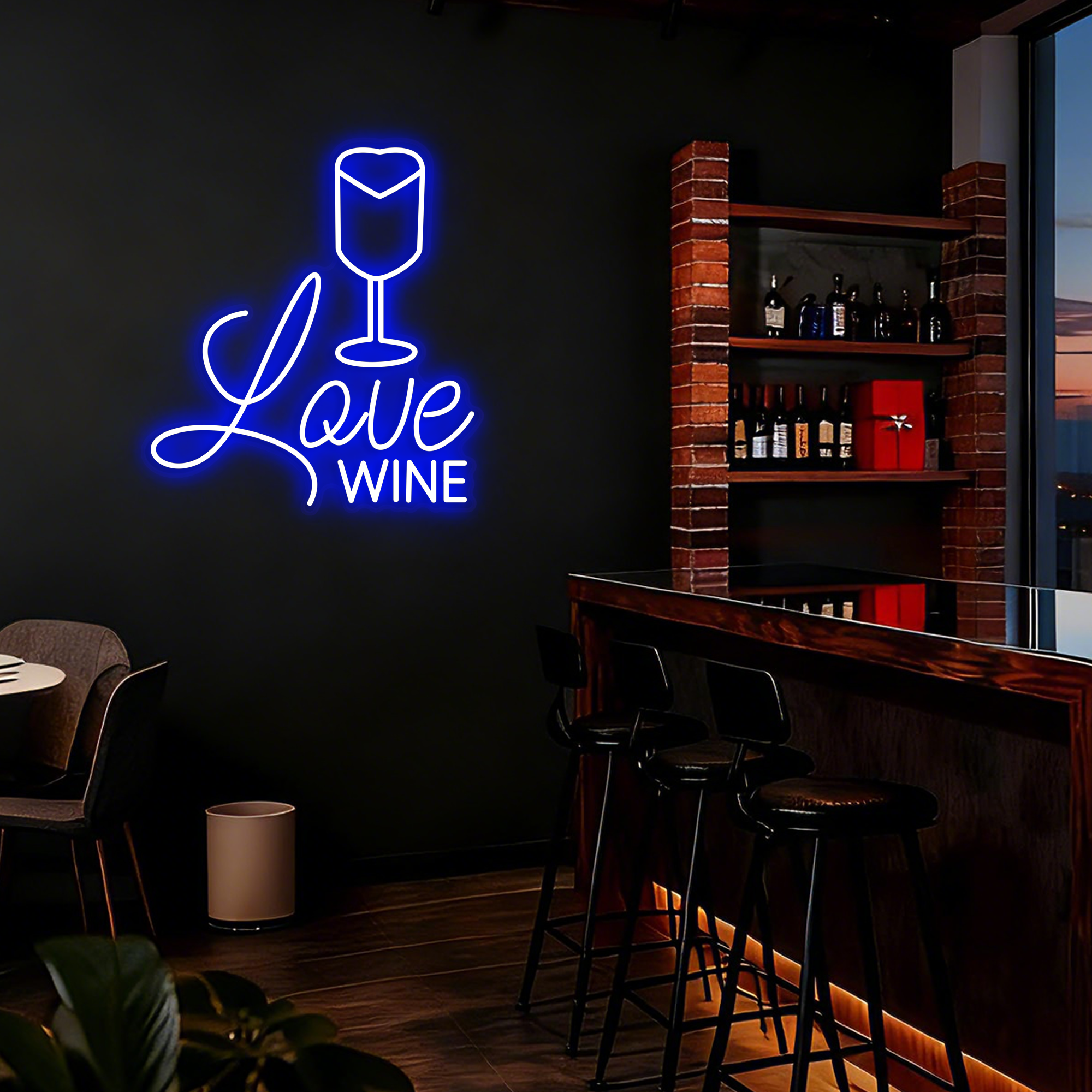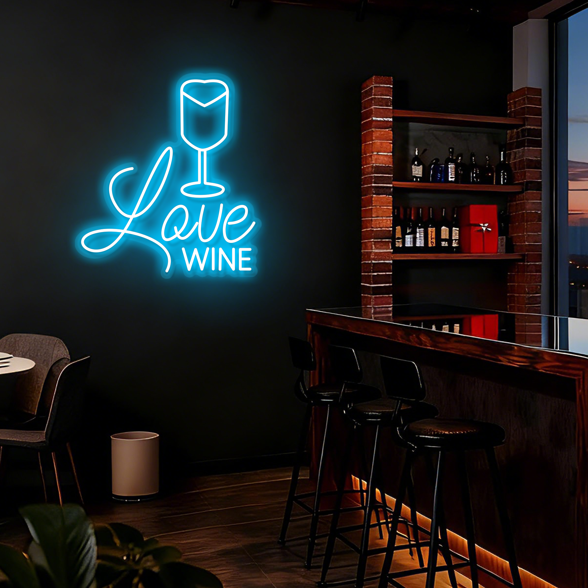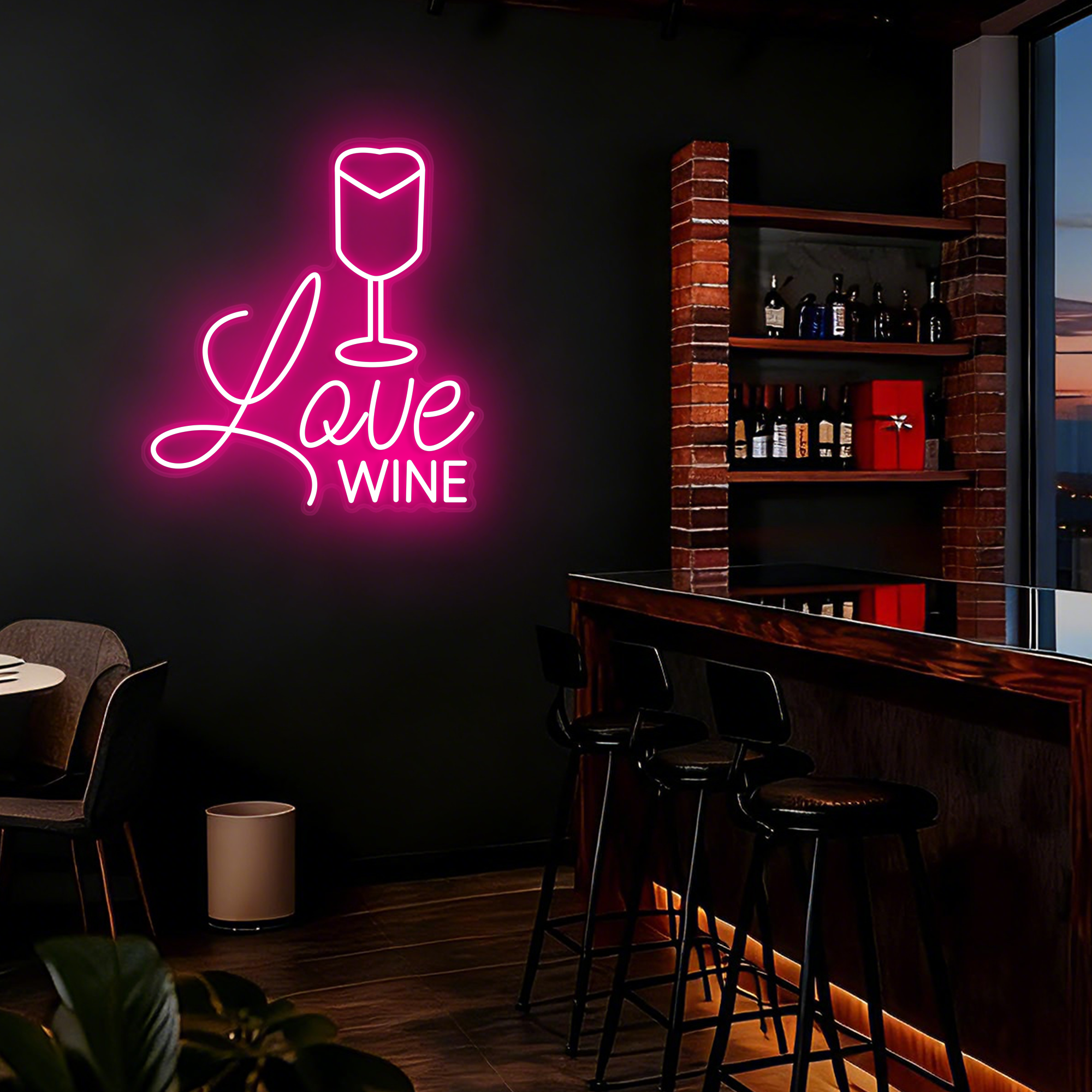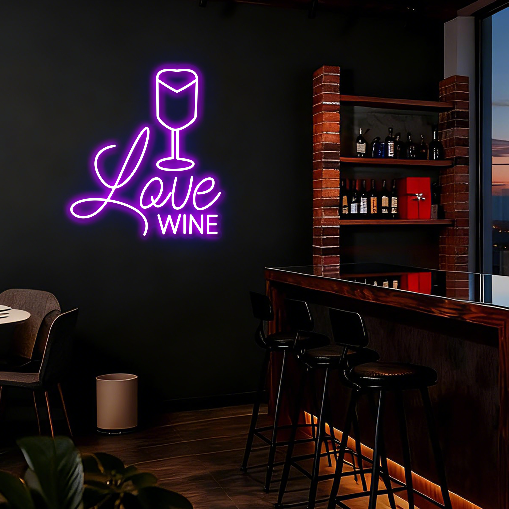 A perfect gift for wine lovers, a stylish addition for hospitality businesses, or a beautiful accent for your personal living space. It effortlessly combines modern style with timeless appeal. Customization options for size and neon color are available to match your specific decor theme.